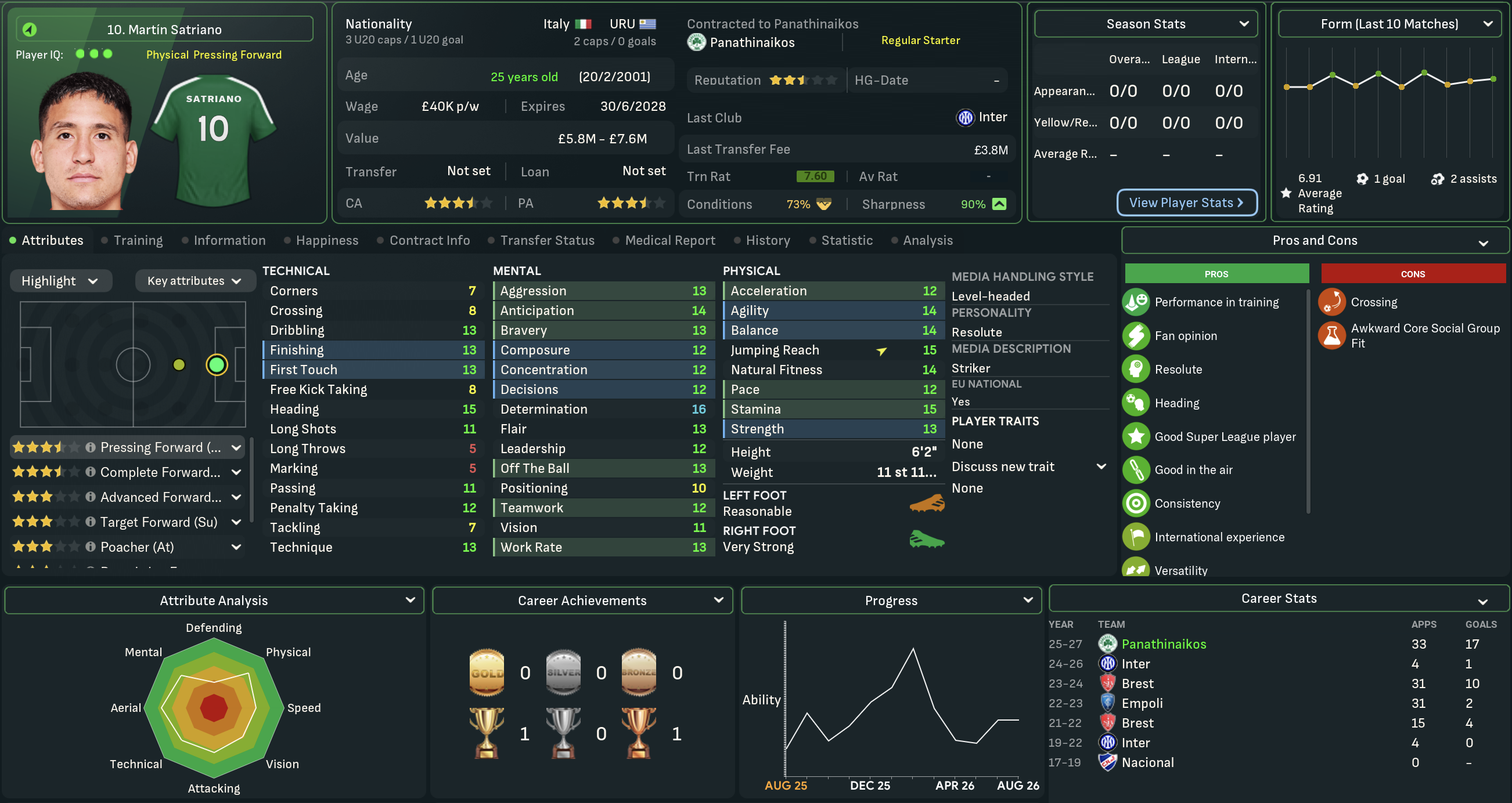 Satriano scored on the final day to surpass Ioannidis’ club record of 33 goals in a season and, even more impressively, came 2nd to Darwin Nuñez with 10 in 11 in the Champions League. He led the way with 34 in 46 followed by Ioannidis (23), Demir (12), Mancini (11), Ballard (8) and Williams (8). But Ioannidis was the main creative force with 17 assists followed by Demir (15), Mancini (14), Firpo (12) and Paulino (11). And Satriano was the star man with an impressive 7.54 average rating.