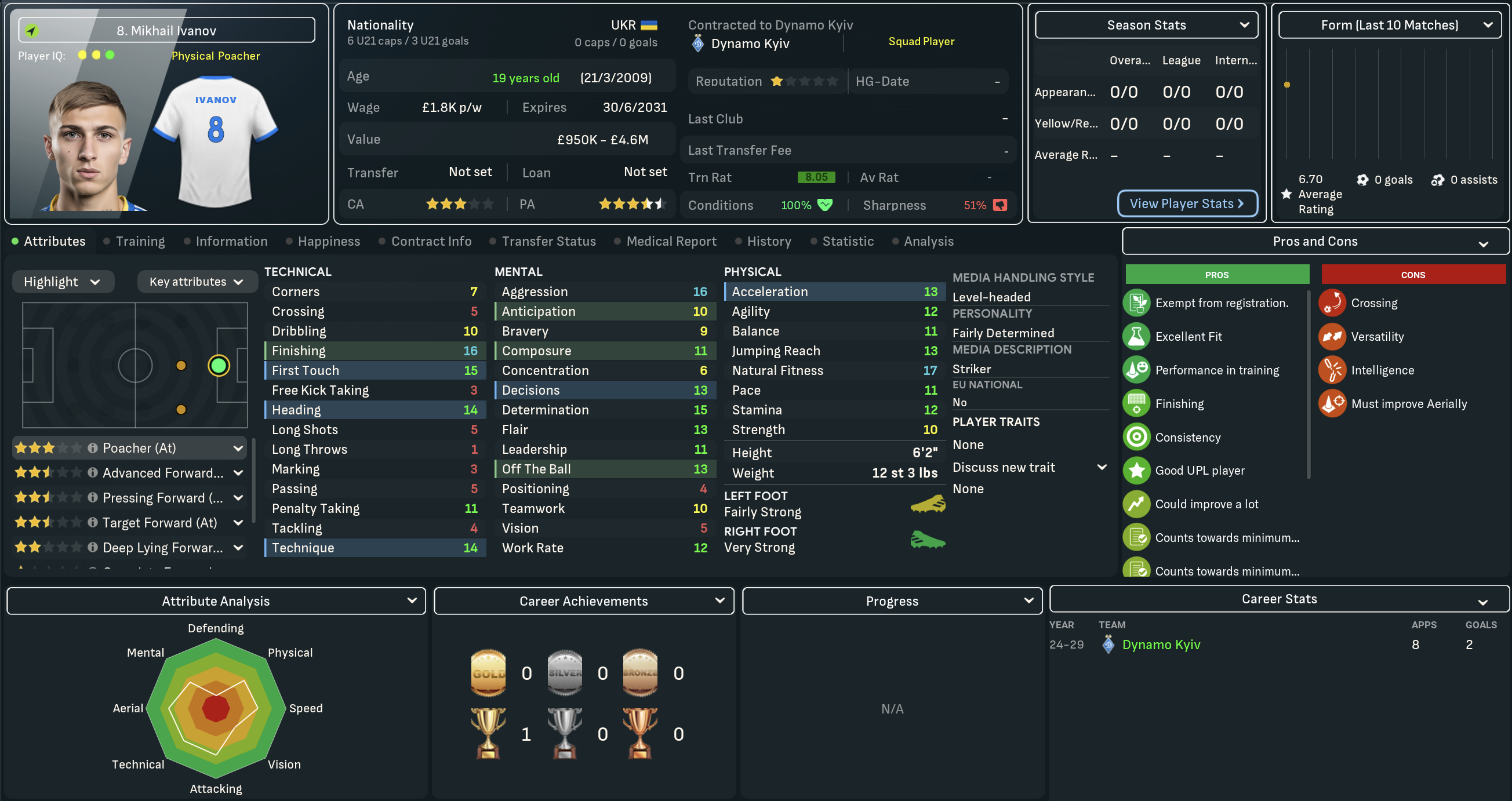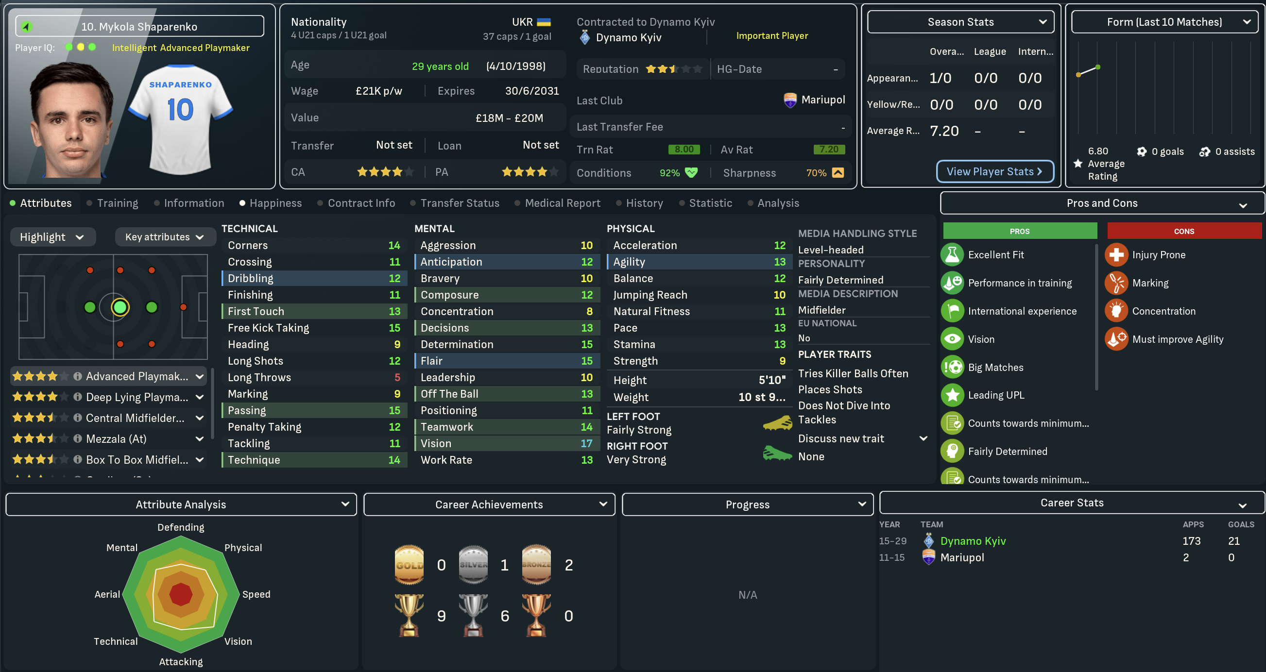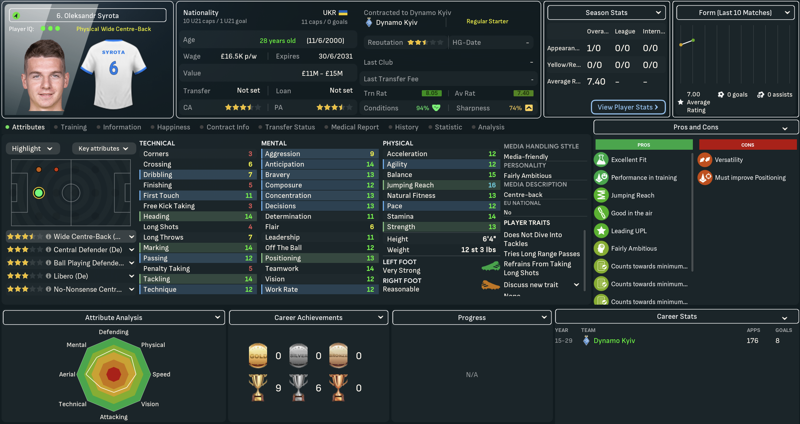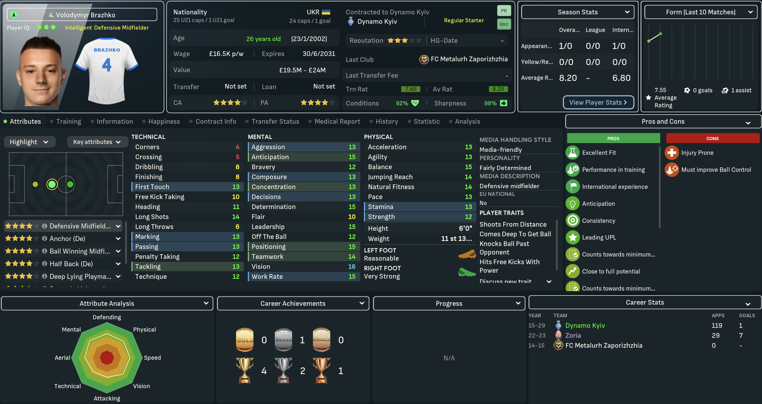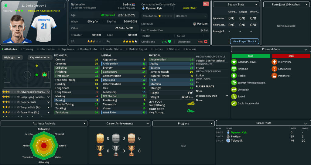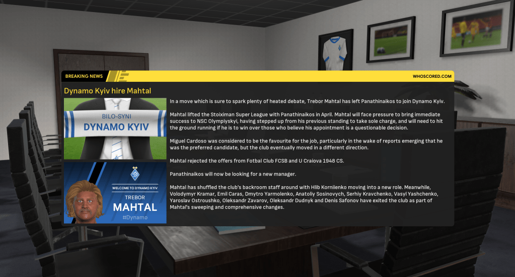 He explored a few exciting opportunities in the summer of 2028, attending interviews with Universitatea Craiova, FCSB, Dynamo Kiev and Dinamo Zagreb, which gave Mahtal a massive decision. He didn’t see any point staying in Greece despite the squad he’d built, as they were likely to lose their better players. Craiova and FCSB posed interesting rebuild challenges, while Kyiv and Dinamo had great finances and infrastructure. So he decided to see who came calling first – which proved to be the Ukrainian side.