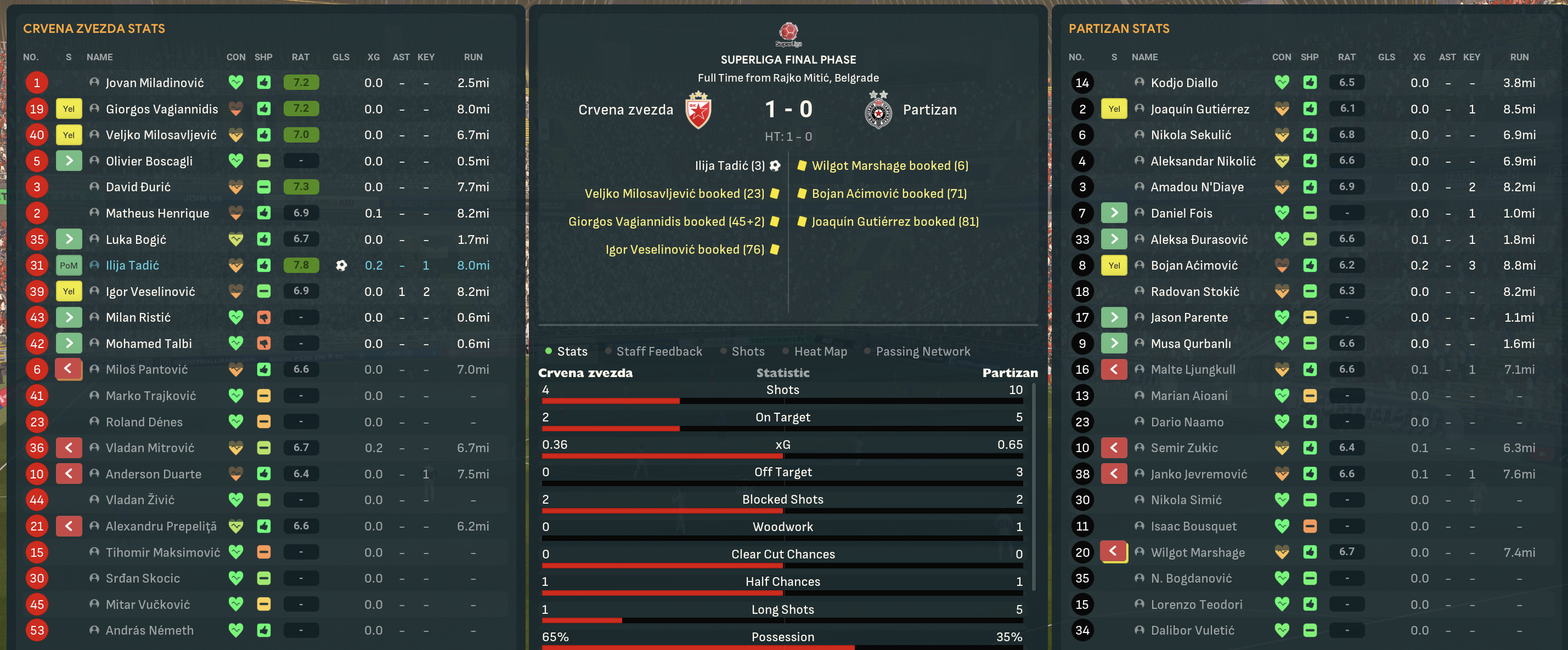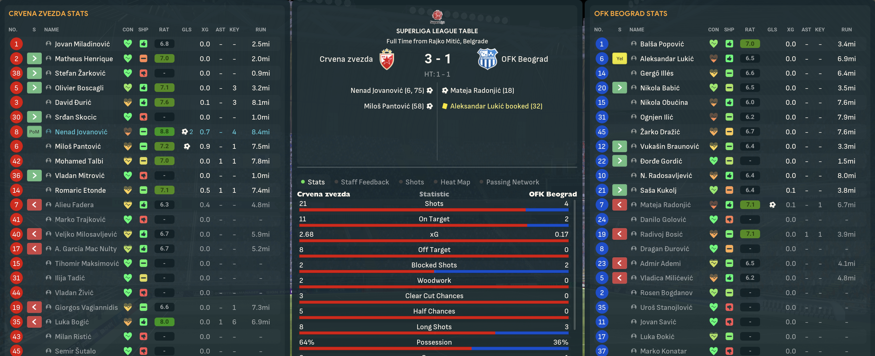 Red Star finished on 85 points after 27 wins, 4 draws and 6 defeats, scoring 79 and conceding just 25. Pantovic was the third-top scorer with 15 despite a dodgy end to the campaign but Tadic was the best player in the league with a 7.40 average rating and Miladinovic made a league-high 93% of saves.