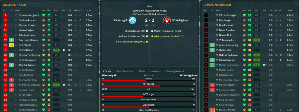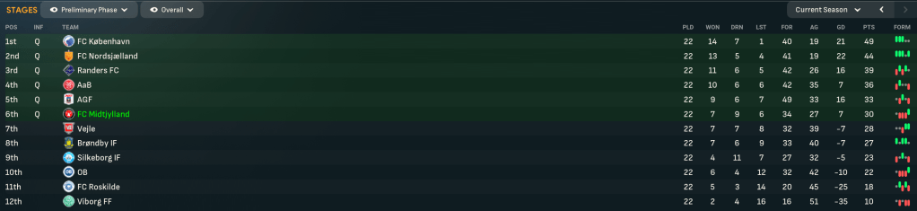 The Championship Group started terribly with a 1-0 defeat at home to AaB then losing 3-1 at Nordsjaelland and 1-0 at Randers. Mahtal switched things up to a 4-3-3, which at least stopped the rot with Vlad and Music securing a 2-2 at home to AGF. But that ended any outside hopes of the top four and left them six points off 5th, and Mahtal was seriously worried he might get the sack.