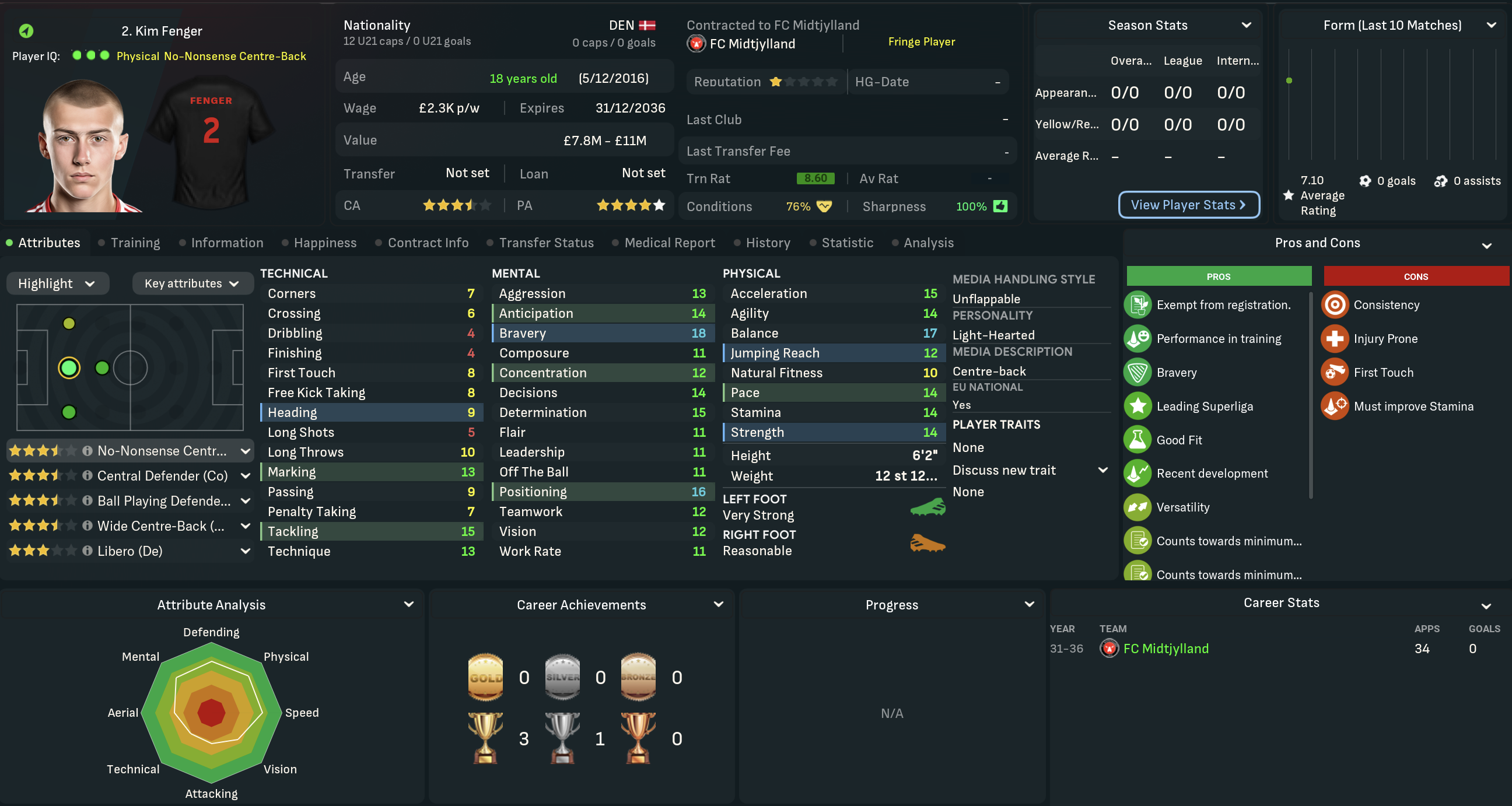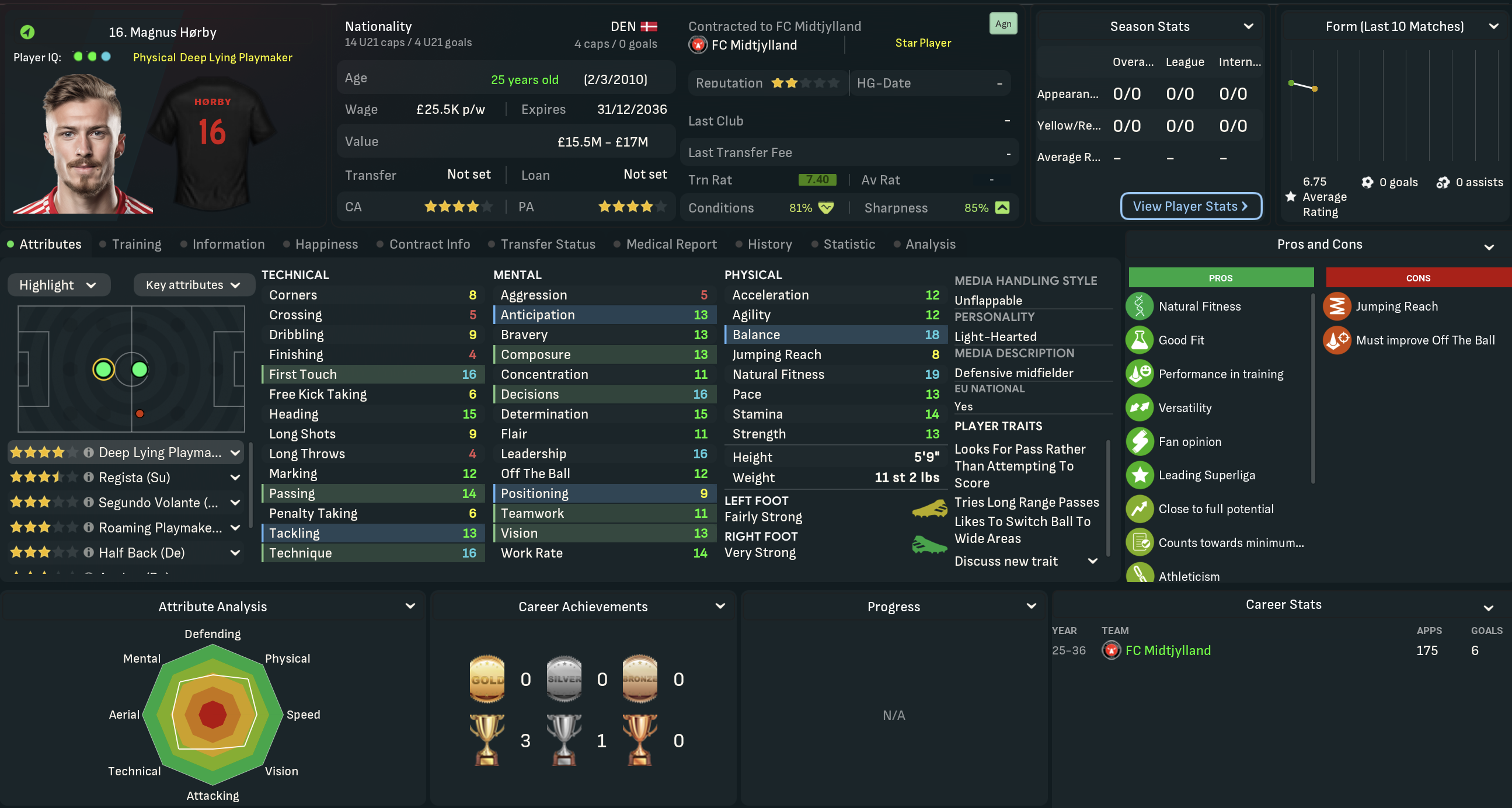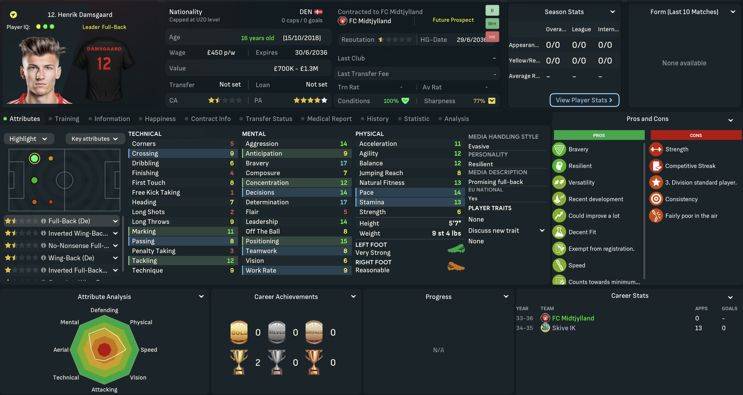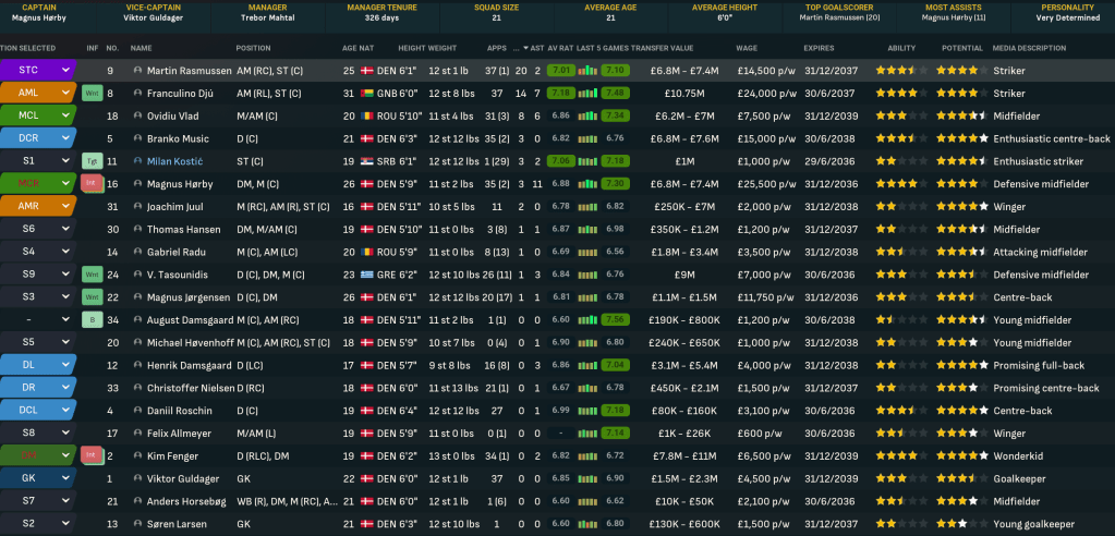 Mahtal was very disappointed with his first season in Denmark, which was by far the lowest point of his 13-year career to date. That said, there was no doubting he was very much getting the challenge he’d seeked in the summer! He was half expecting a meeting with the board as the summer progressed, but wouldn’t be departing under his own steam. That was largely because he was excited about the club’s potential, boosted by a strong youth intake that inlcuded five “elite talents.” However, the club’s finances weren’t in good shape, so they were likely to lose players.