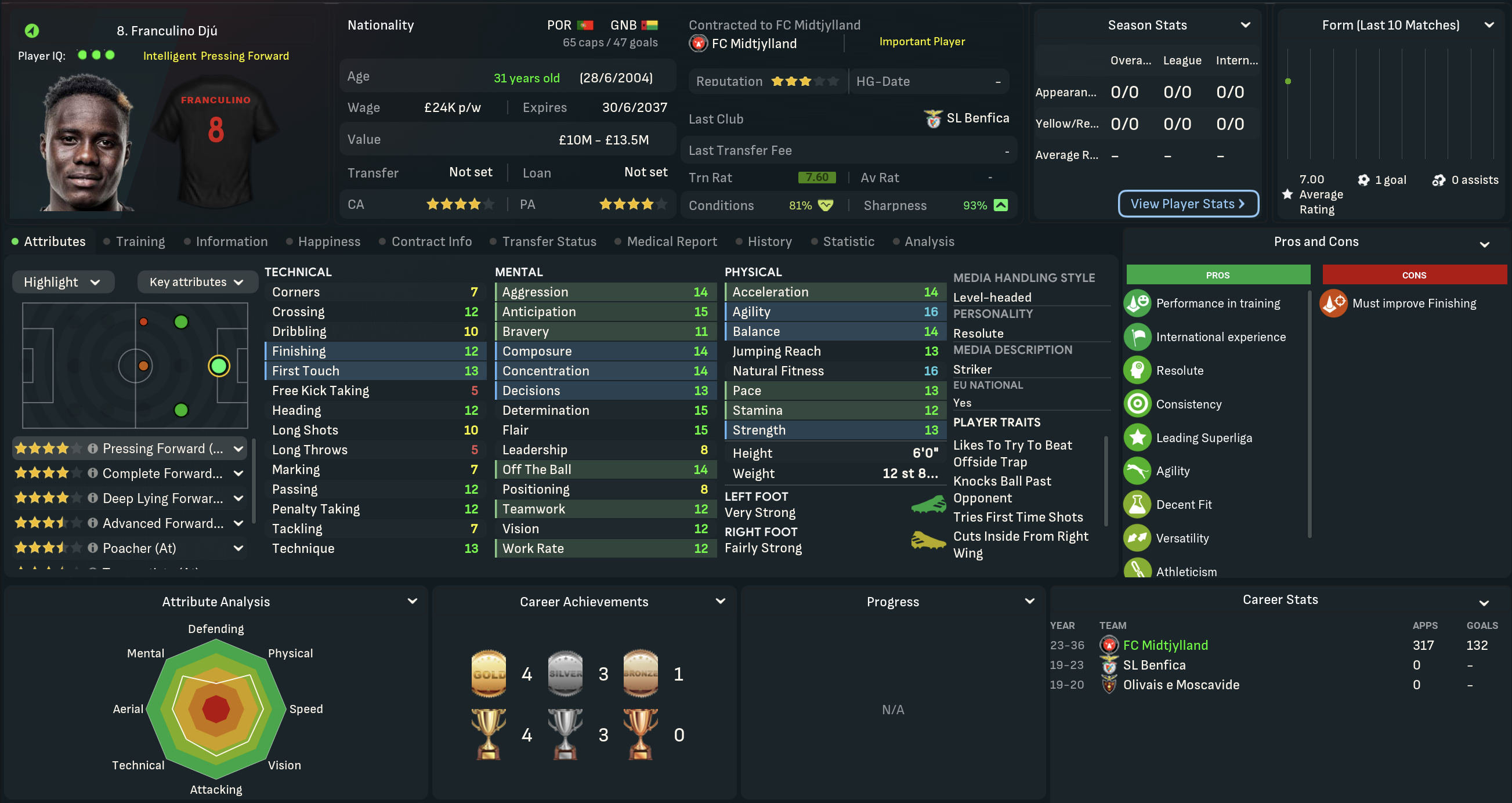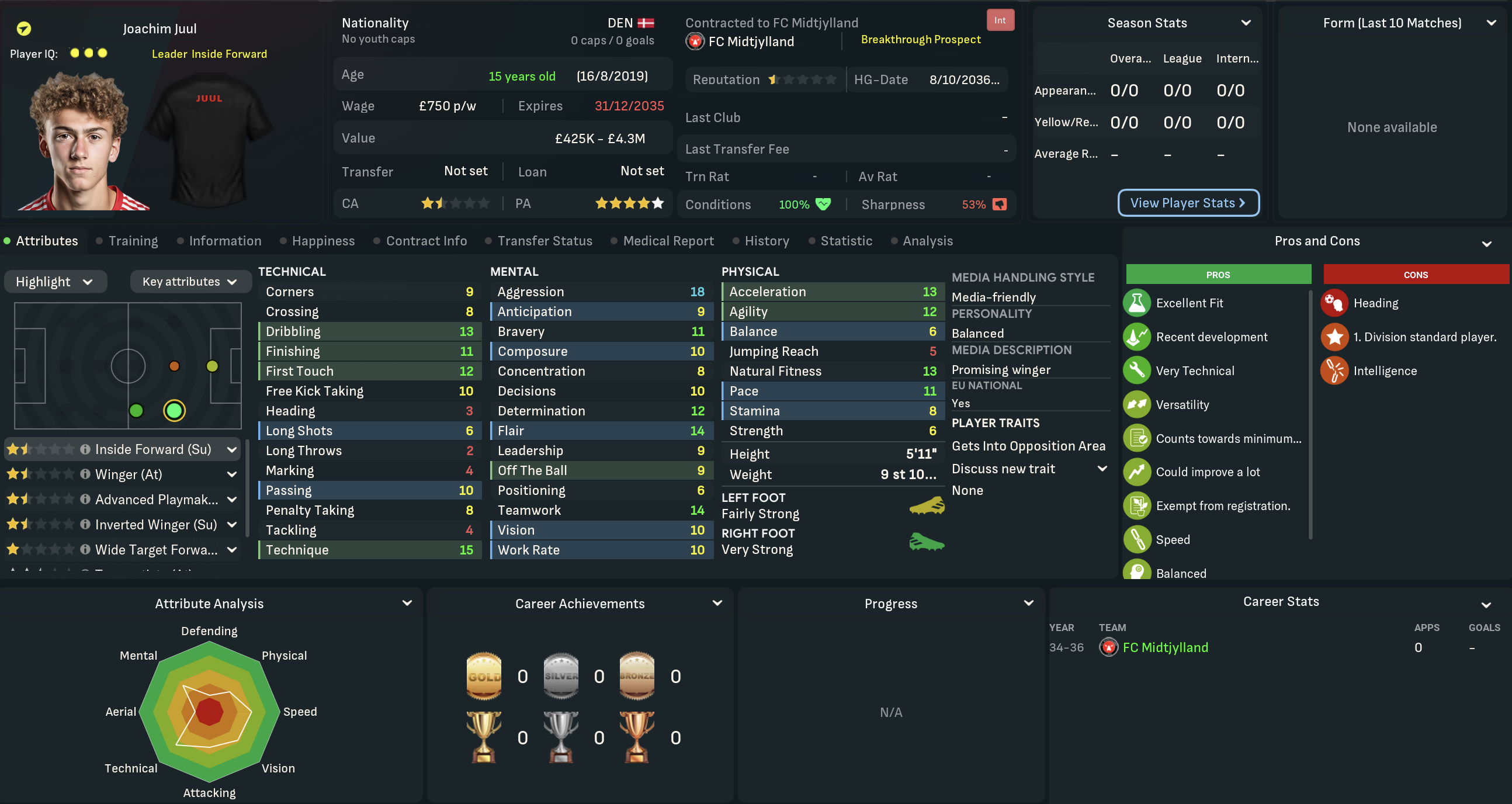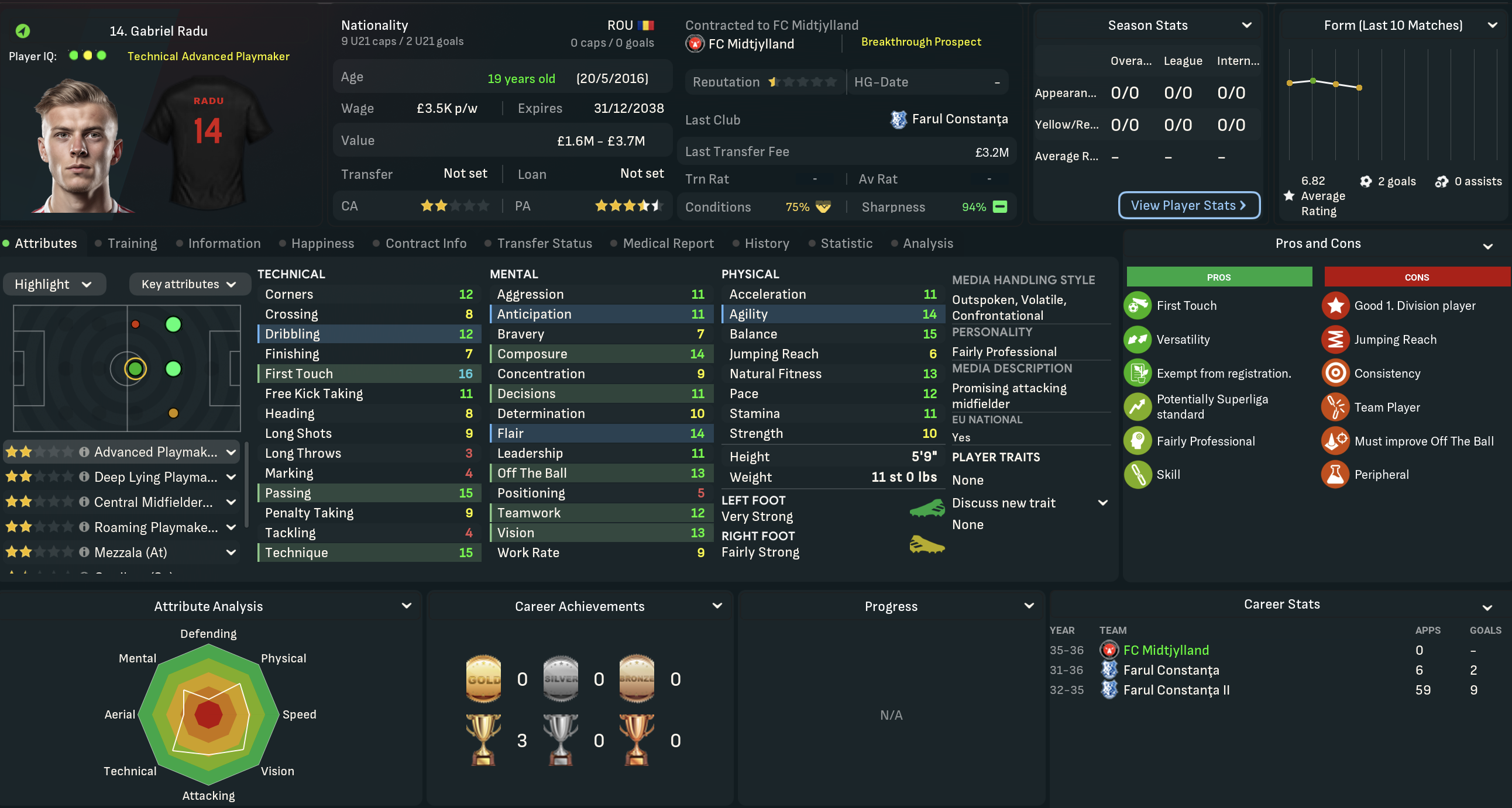 Mahtal was very disappointed with his first season in Denmark, which was by far the lowest point of his 13-year career to date. That said, there was no doubting he was very much getting the challenge he’d seeked in the summer! He was half expecting a meeting with the board as the summer progressed, but wouldn’t be departing under his own steam. That was largely because he was excited about the club’s potential, boosted by a strong youth intake that inlcuded five “elite talents.” However, the club’s finances weren’t in good shape, so they were likely to lose players.
