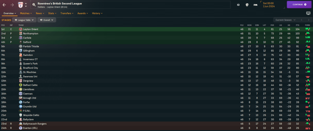 I recently found myself running out of inspiration for saves on Football Manager 2024 and fed up with the same old teams dominating, even on a save 30 years into the future. I’ve been intrigued by the idea of creating a British league but, obviously, that would be dominated by the prominent English teams. So instead, I inverted the entire system, putting the smallest British teams at the top of the pyramid and vice-versa.