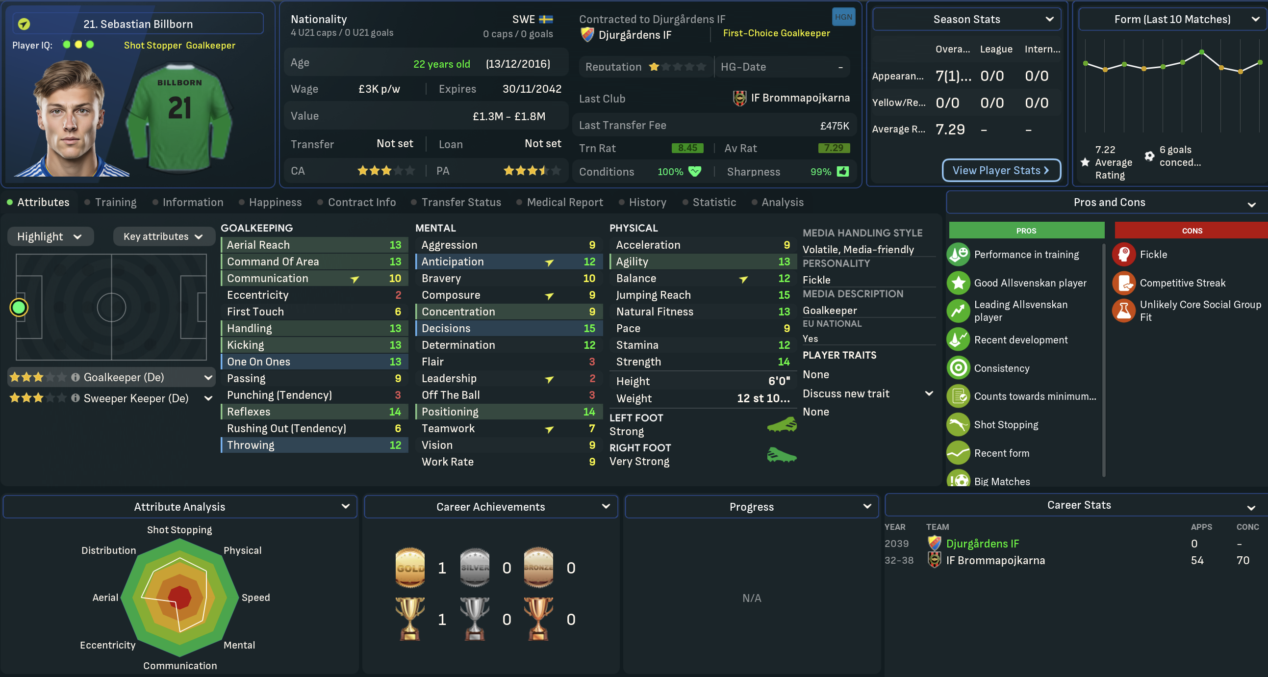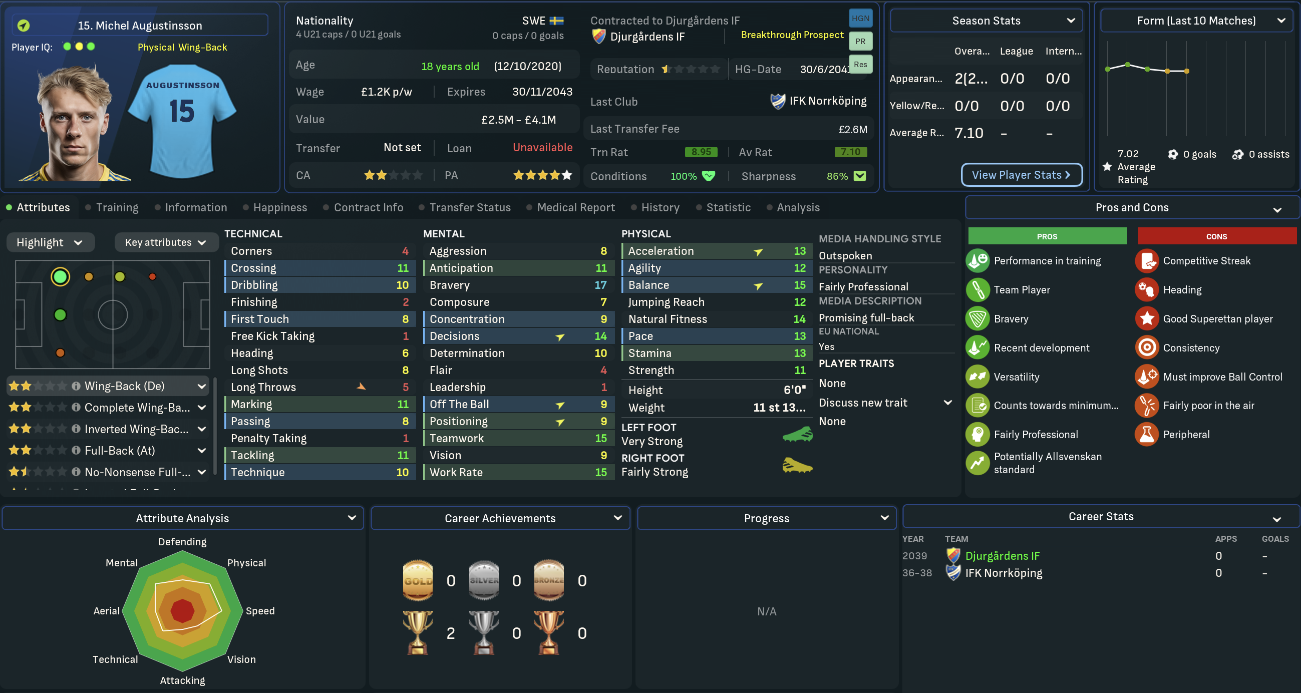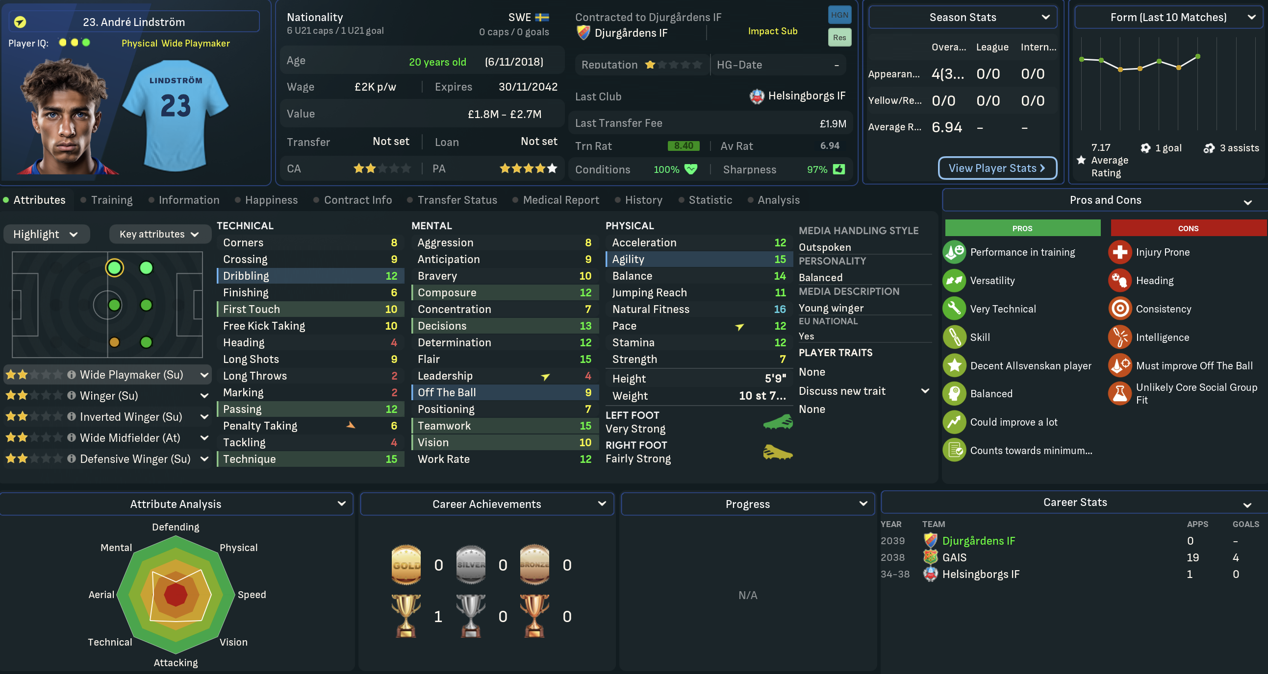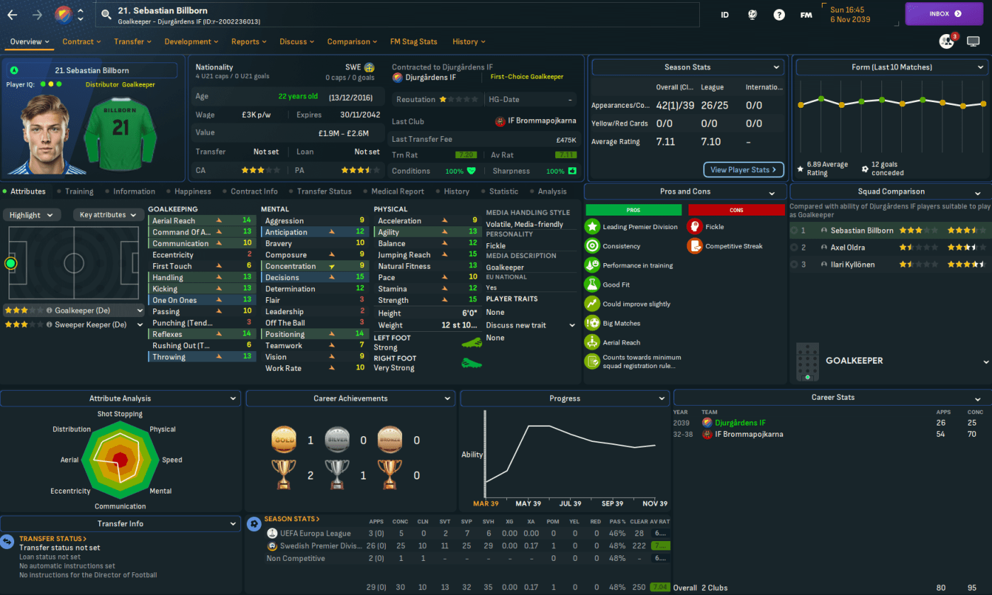 Djurgårdens’ European participation had boosted their finances to £17m and Mahtal had a £12.7m transfer kitty ahead of the 2039 campaign. That was boosted by selling 32-year-old backup wingers Melvin Persson and Meltiadis Lolos to OFI and Lens for £1.5m and £600k, 31-year-old keeper Simen Yttervik to AZ for £500k and 33-year-old midfielder Mohamed Fofana to Strømsgodset for £500k.