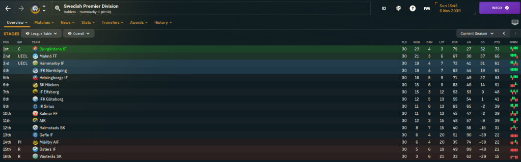 That huge victory was backed up by wins of 1-0 at Kalmar, 3-0 at home to Elfsborg, and 4-1 at champions Hammarby, which opened up a 7-point gap going into the final five games.