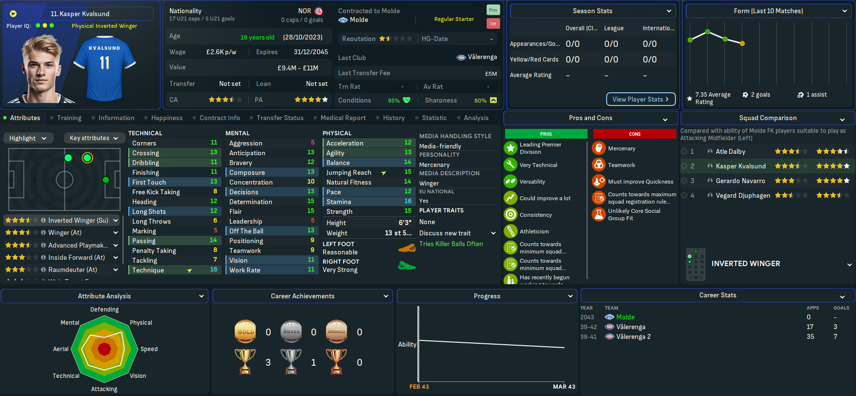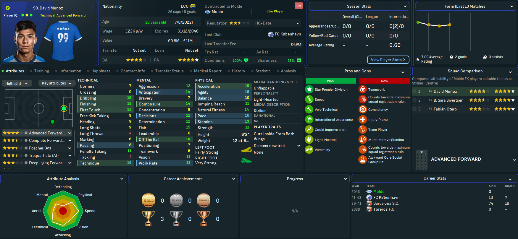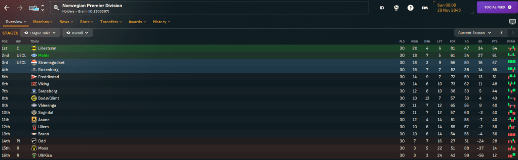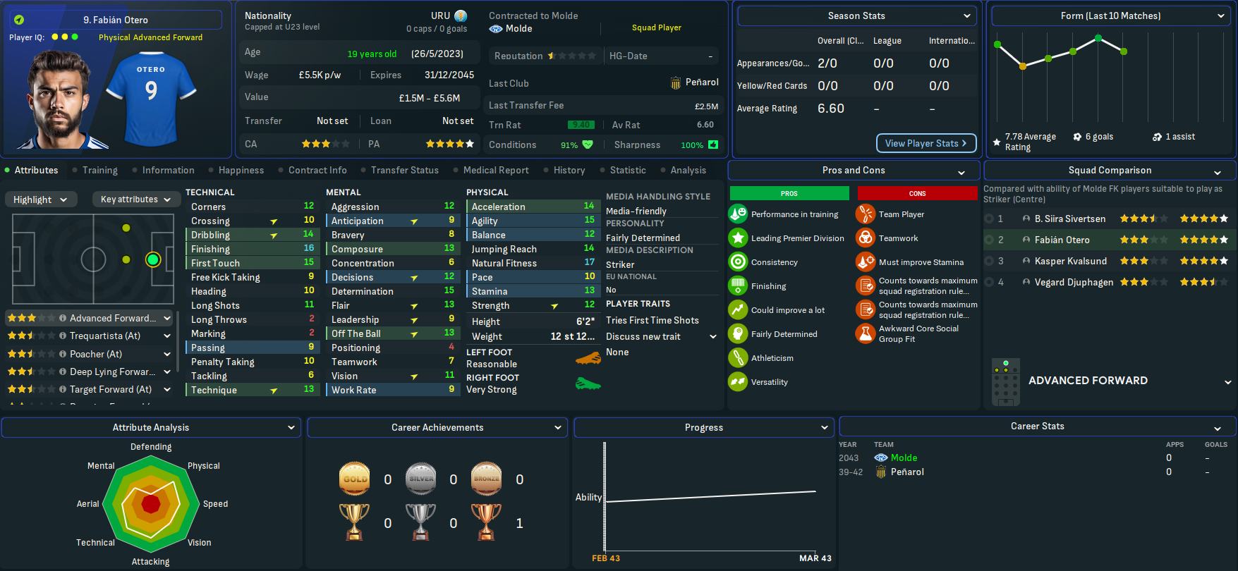 A strange 12 months had seen Trebor Mahtal spend a very short time in Turkey before jumping ship to Molde Fotballklub, who narrowly missed out on the Norwegian title to Brann. Mahtal had inherited a good core of young players but was expecting a very busy off-season ahead of the 2043 campaign.