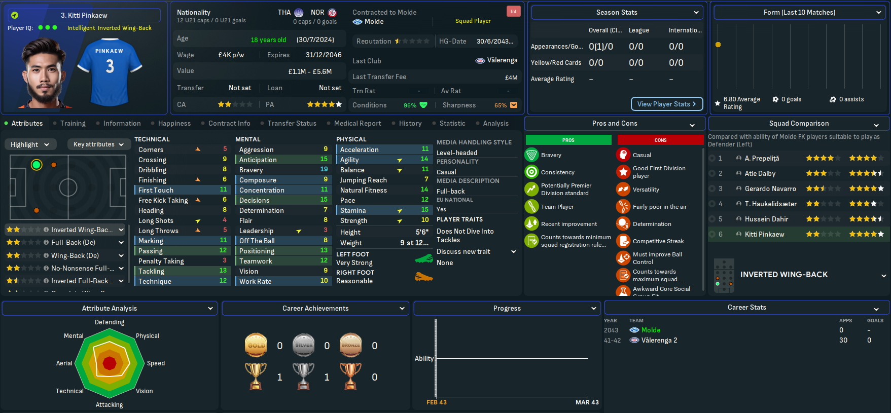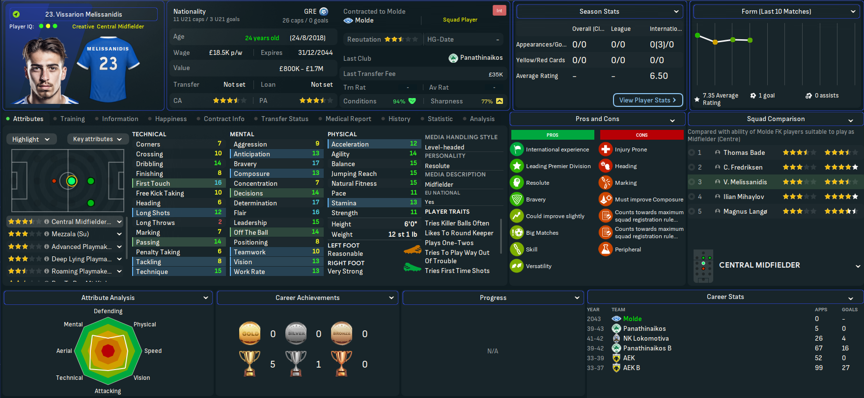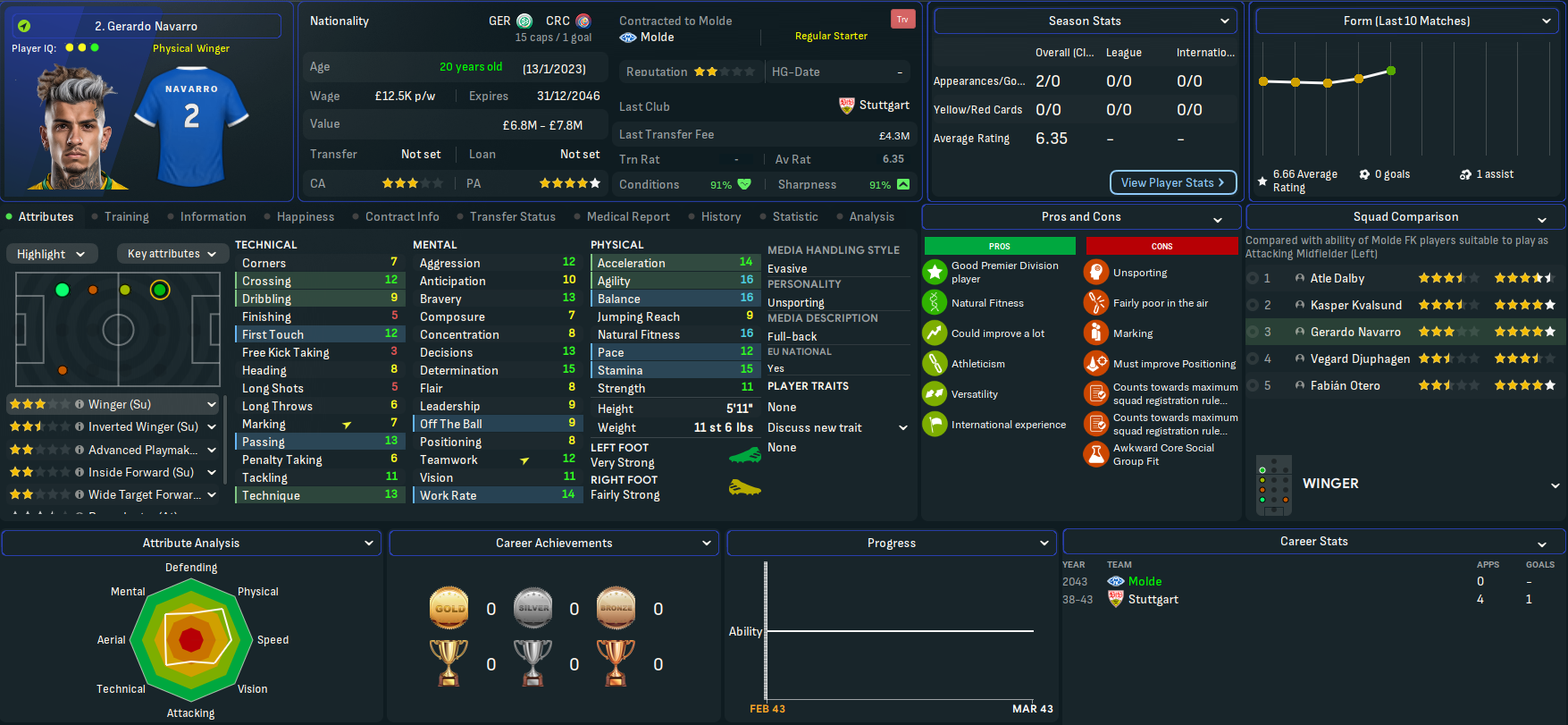 A strange 12 months had seen Trebor Mahtal spend a very short time in Turkey before jumping ship to Molde Fotballklub, who narrowly missed out on the Norwegian title to Brann. Mahtal had inherited a good core of young players but was expecting a very busy off-season ahead of the 2043 campaign.