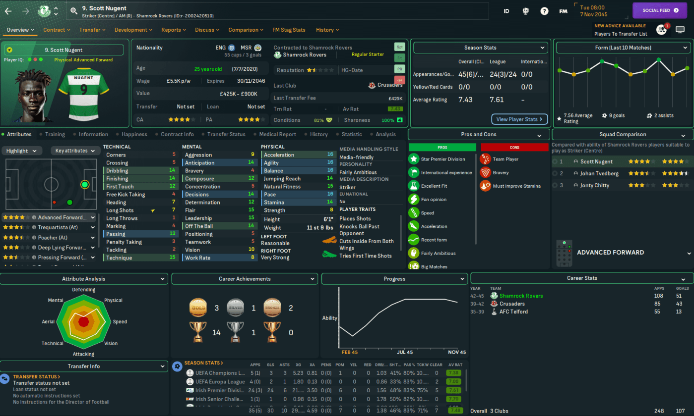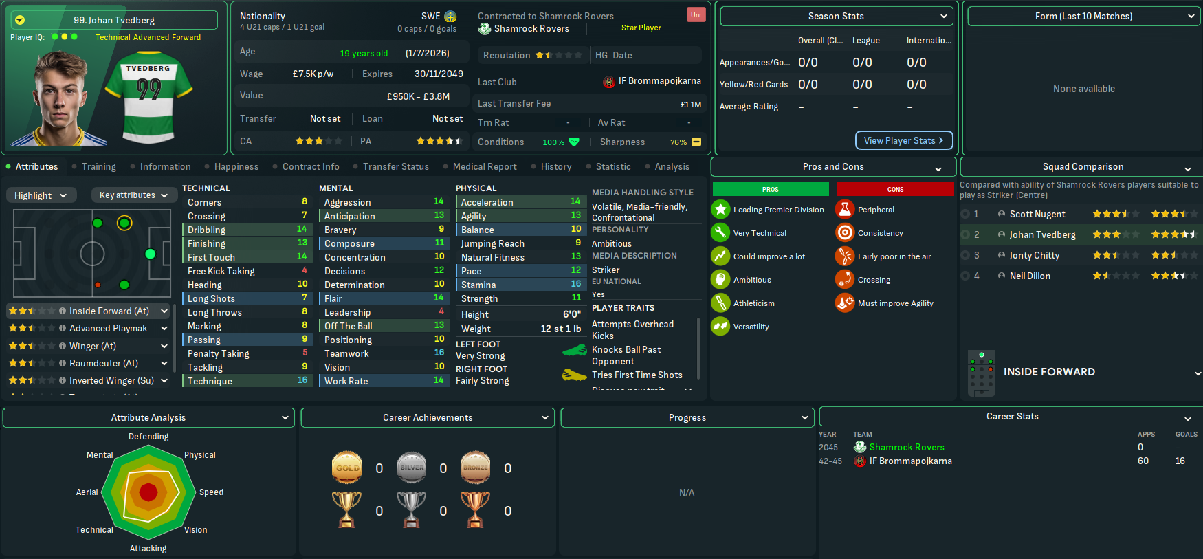 Mahtal was more than happy to take some time away from the game and wait for the right opportunity. However, just 10 days after his resignation, Irish side Shamrock Rovers offered an interview offer, asked for staff changes and made an offer within five days. Depressingly, within that time, Molde had already sold star players Munoz (who’d been worth at least £60m), Nordhagen and Glik to Saudi for just £16m combined, which proves the AI is dreadful at transfers!