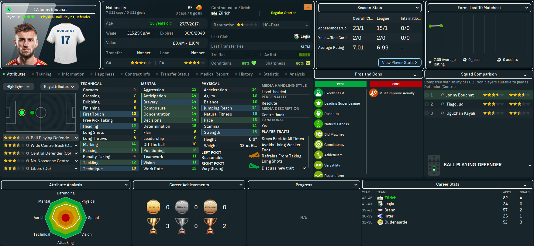 Fussballclub Zürich, also known as FCZ, is a professional club based in Zürich. The club was founded on 1 August 1896 by former members of local sides FC Turicum and FC Excelsior, one of who was Joan Gamper who went on to found a little-known Spanish club called FC Barcelona. Zürich won its first title in 1992 and has gone on to win 13, all of which were before this save began with the most recent being back in 2022.