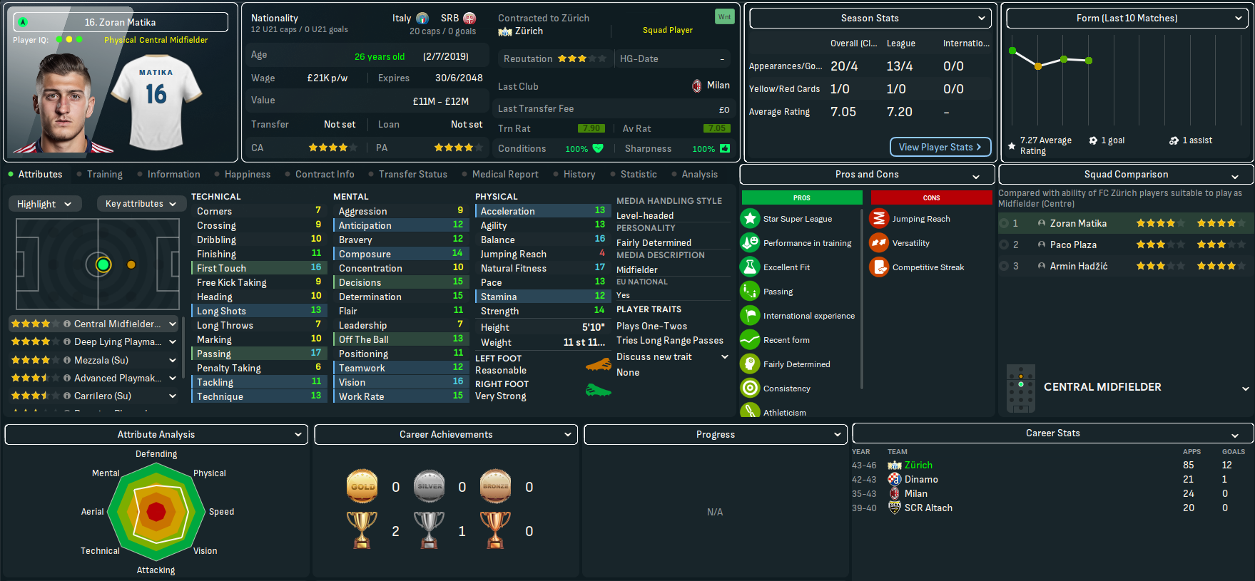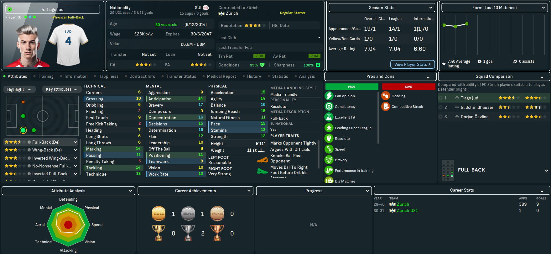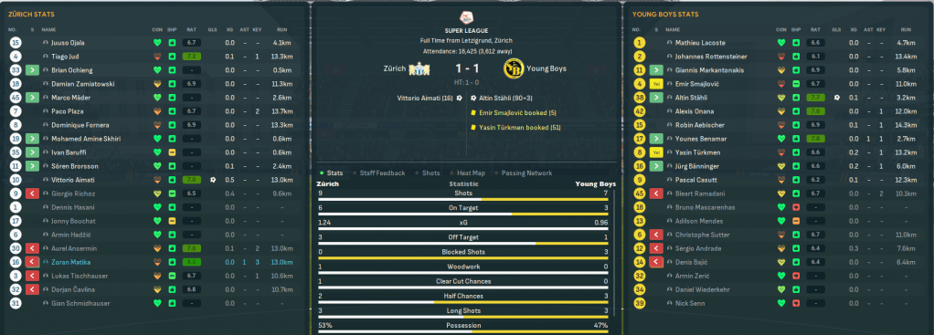 Mahtal was thrown straight into Swiss football at 5th-place St. Gallen two days after his appointment. And his new side applied themselves well to the new shape to hold onto a 0-0. FCZ fans got their first look at Mahtal as they entertained 3rd-place Young Boys, who they’d only beaten 25 times in 86 meetings during this save. But they started well as Matika sent Aimati through to finish on 16 minutes. Richoz hit the post just after the break and Young Boys nicked an undeserved point from a corner. The tough start continued with a trip to Grasshoppers and they made it three draws from three as Jud earned a 1-1. Mahtal’s first win arrived as they ended 2045 by dominating bottom-side Yverdon 3-0.