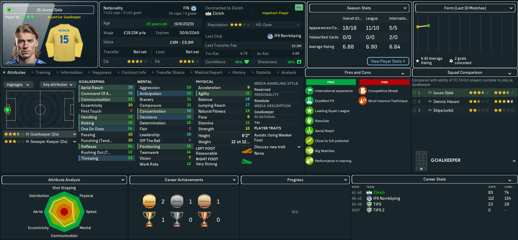 Mahtal had been looking forward to a little time away from the game, ideally until the summer to get back into the regular schedule of mainland European football. But the peace and quiet of his Swedish cabin was interrupted by a phone call from an unknown number. An interview went pretty well and, after just eight days of unemployment, on 16 November 2045, Mahtal was heading for Switzerland.
