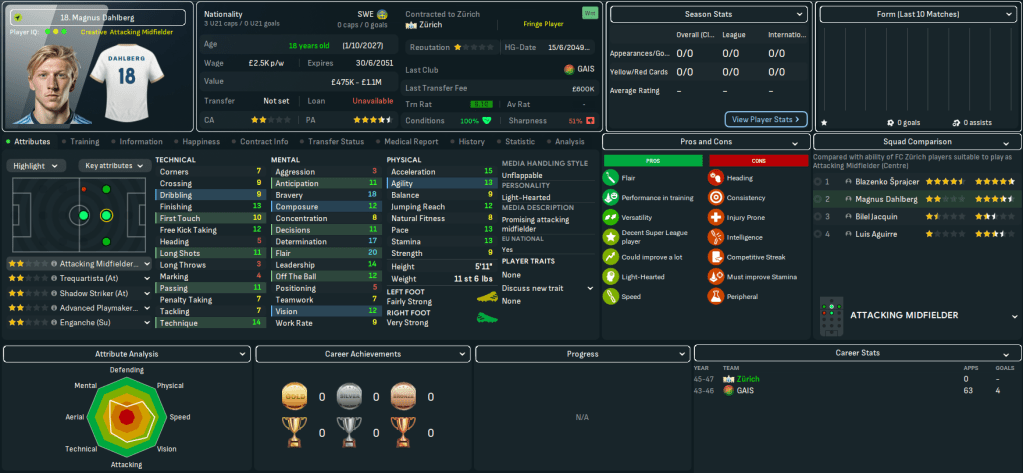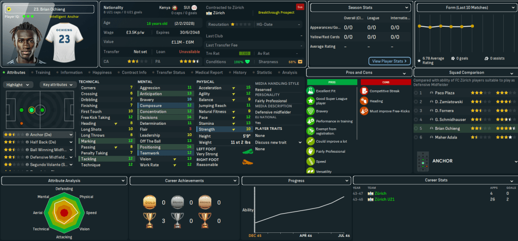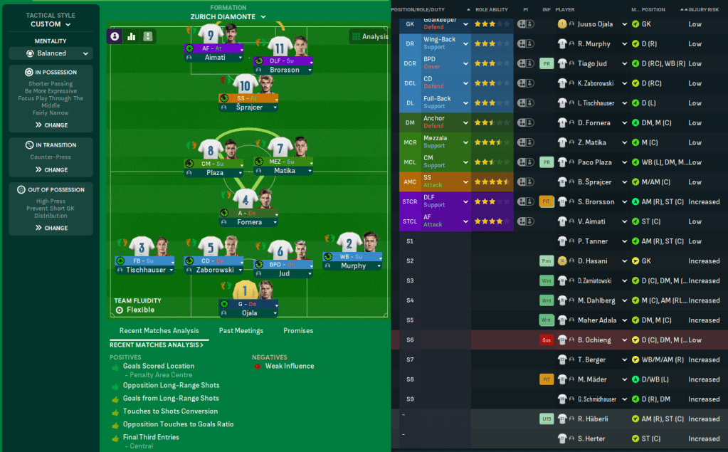 That began by selling underperforming midfielders Aurel Ansermin for a hefty £6.5m and Armin Hadzic to Basaksehir for £5.5m. Mahtal used that income to snap up wonderkid attacking midfielder Blazenko Sprajcer for £6.25m from Dinamo Zagreb, who instantly became the best player in Switzerland. He was joined by promising right back Ricky Murphy for £5.5m from Slovan Liberec and flair-heavy midfielder Magnus Dahlberg for £600k from Swedish side GAIS. Mahtal also promoted several hot prospects like centre back/midfielder Brian Ochieng, midfielder Maher Adala and striker Robin Häberli, which brought the squad’s average age down to just 22.