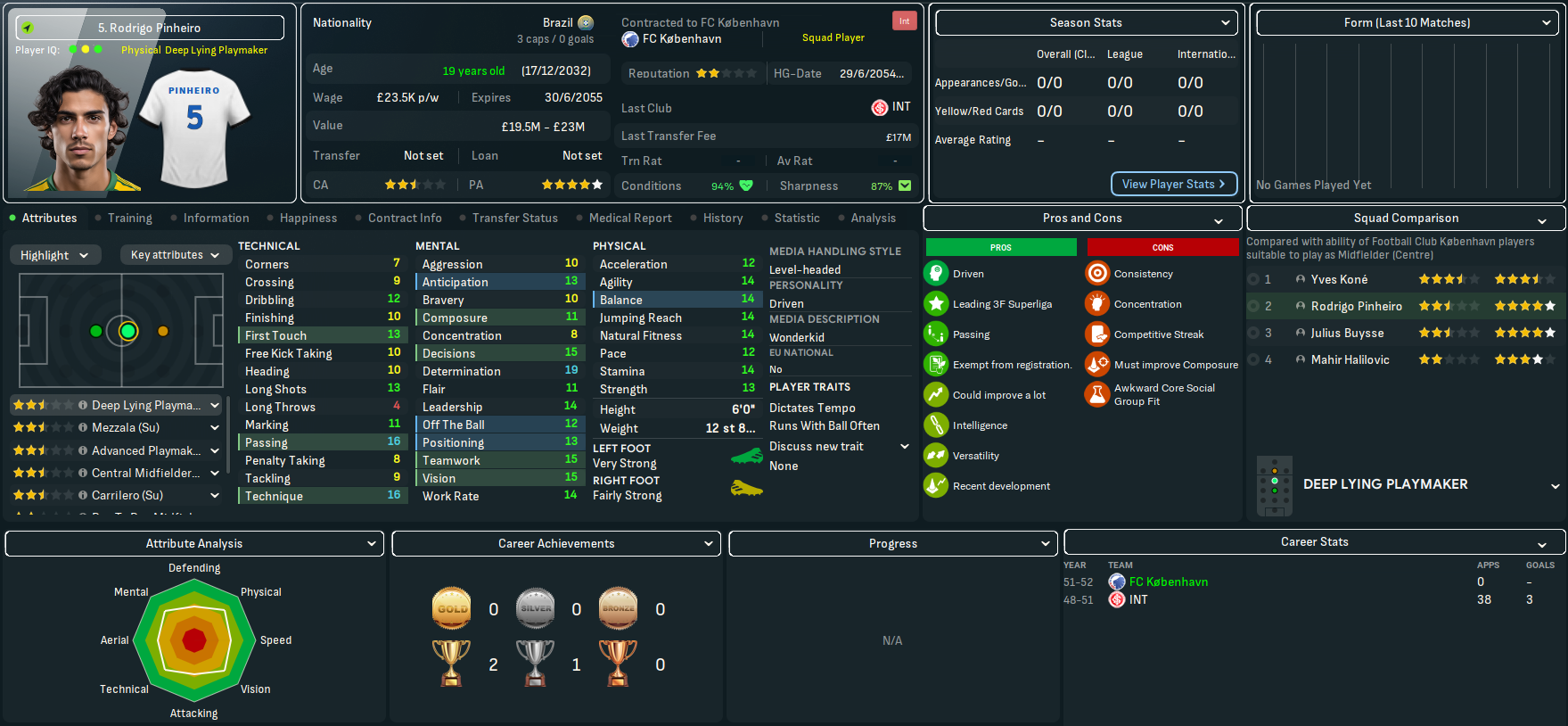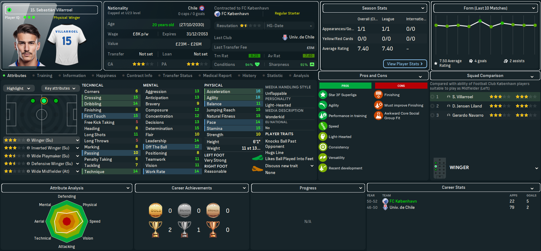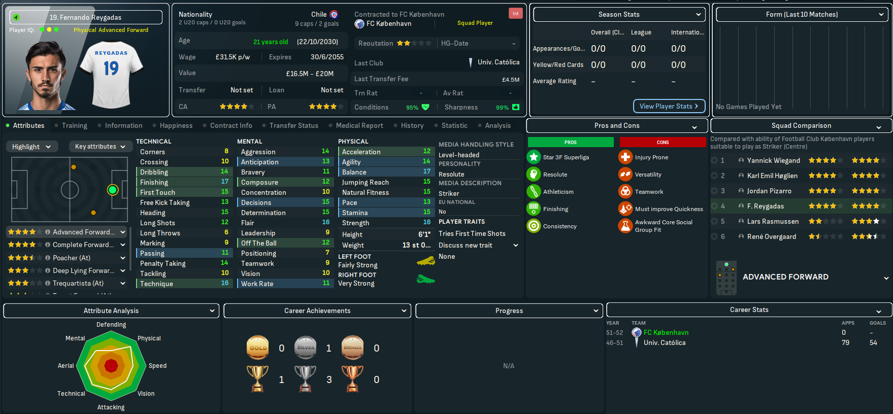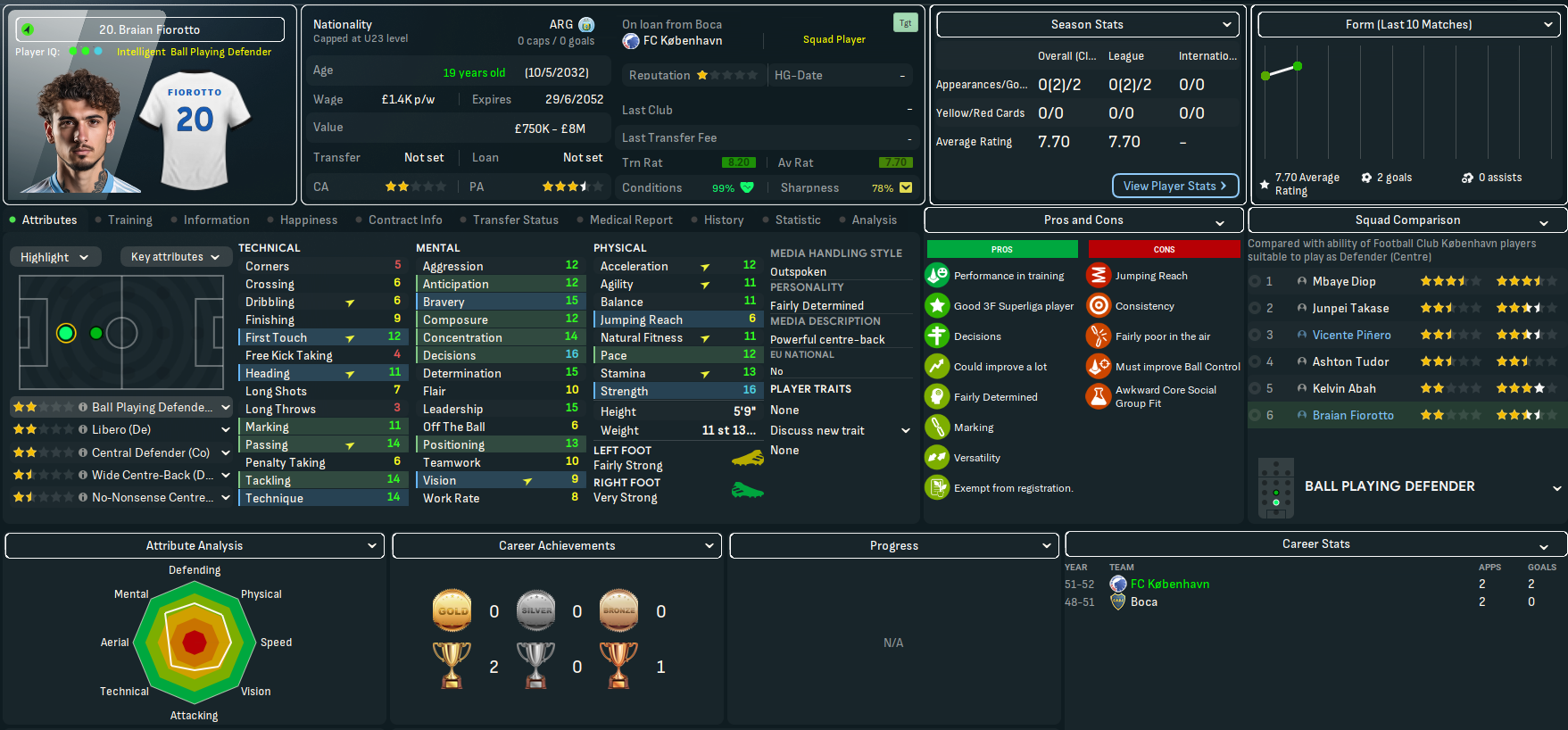 On paper, this doesn’t look like the most exciting challenge. København have won the last 23 league titles, 27 out of 28 during this save and 29 of the last 30 back to 2022. However, based on the players he’d seen over recent seasons, Mahtal thought the quality at the club would give him a chance to have a final crack at European competitions. Indeed, København sits 25th in the European coefficients, only behind RB Salzburg (17th) in the playable leagues available to Mahtal. In 28 years of being in the Champions League, they’ve never surpassed the Champions League round of 16 and have lost in the knockout playoff round in the last six seasons – but did win the Europa League in 2041.