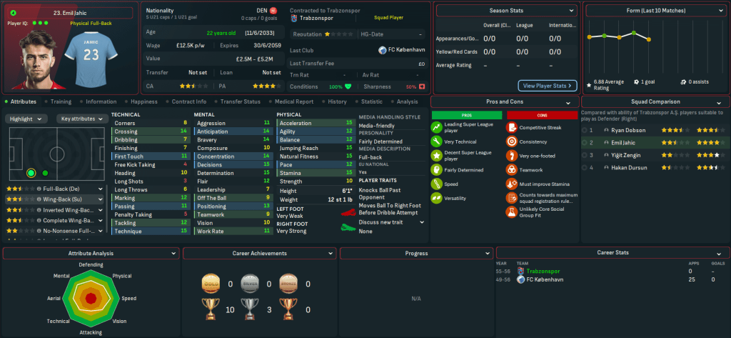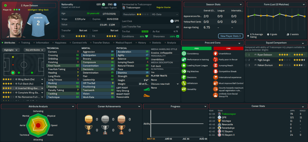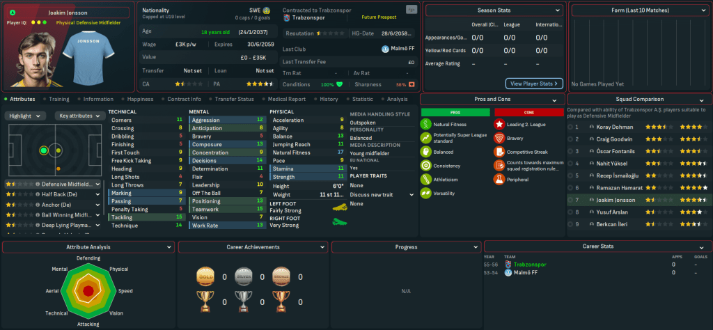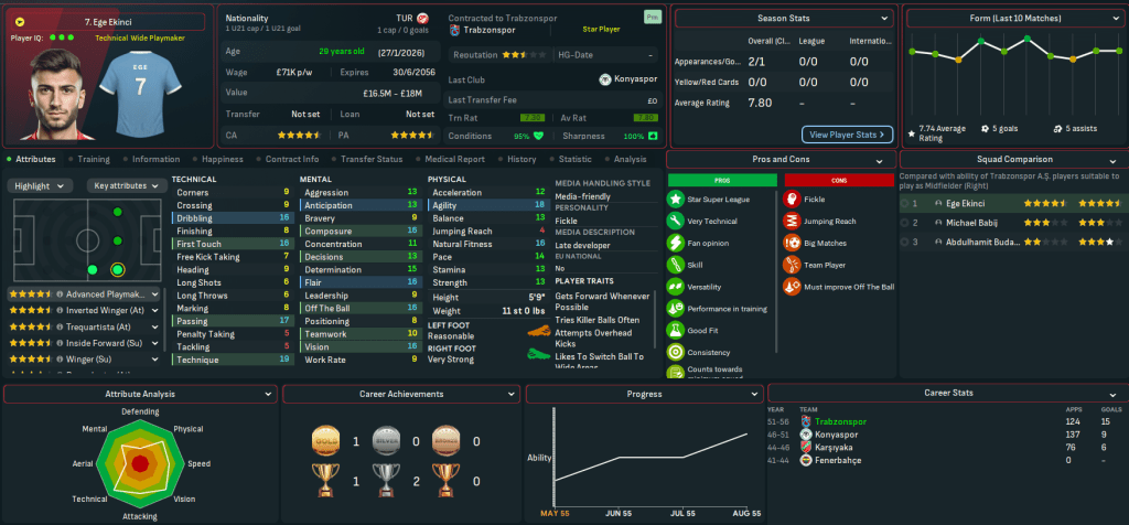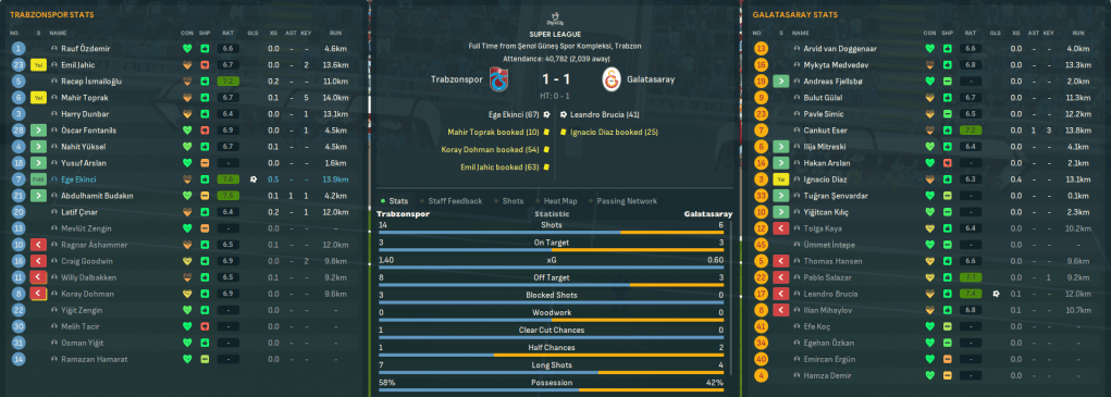 Trabzonspor began 2056 where they ended 2055, as Åshammer nicked a 1-0 at Eyupspor and Dalbakken and Ege goals down Adana 2-1. Jahic and Fontanils debuted as Trabzon hosted leaders Galatasaray, who took the lead with a wonderful finish that was obviously their first shot on target. But the hosts had the better of the game and got level as young winger Abdulhamit Budakin came off the bench and crossed for Ege to grab a much-deserved point.