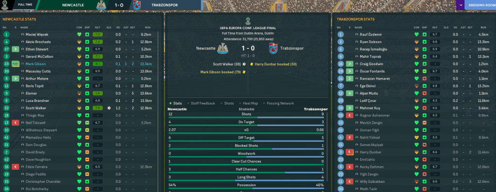 Trabzonspor started the game brightly as Dalbakken had a shot well pushed over after 90 seconds. They were wasteful again, racking up six shots inside half an hour while it took 35 minutes for Newcastle to have one and they obviously scored their first on target. Mahtal threw everything at it but his side just couldn’t find the breakthrough and they fell to a 1-0 defeat.