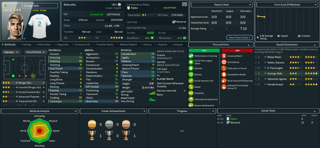Rijeka came into the new season with a decent amount of money. But that was massively boosted by another club record sale as Darko Sutic moved to Spurs for a massive £25m – more than doubling the previous record of £10.5m set last summer. As a result, Mahtal had a £40m transfer kitty to work with. He replaced Sutic with Australian striker Dimitris Panourgias on a free transfer from Chelsea. He also signed two 18-year-olds in exciting full back Rodrigo Bello for up to £7.25m from Nacional and centre back Nikola Cenic for up to £6.75m from Teleoptik. Noticing a severe lack of wingers he later added Oscar Fuglsang and Petr Jícha for £4.7m and £7m from his former sides FC Midtjylland and Slavia Praha.