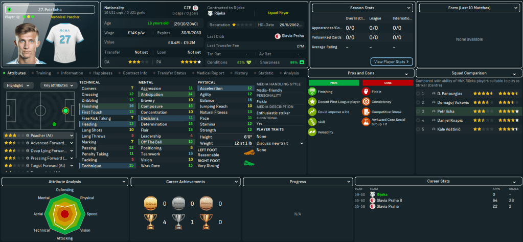 A slightly stuttering start continued with a dreadful performance in a 3-0 loss at Gorica, in which Jícha got sent off on debut. But they bounced back with last season’s top scorer Domagoj Vukovic scoring twice in a dominant 3-0 win at Hajduk, who’d started the season terribly. Their form picked up, spearheaded by going to Osijek and nicking a 1-0 victory through Vukovic’s early header. Winger Stefan Stevens ended his rotten start to the season with a hat trick as they thumped Sesvete 6-0 and backed it up by scoring the opener in a 2-1 home win over Dinamo.