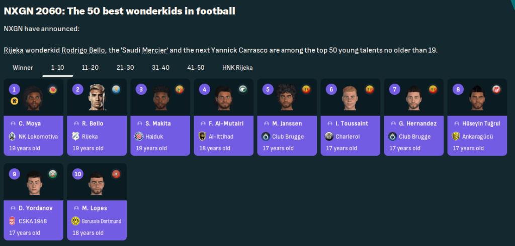 A good sign of the promise at Rijeka was three of their players being named in the 2060 NxGn. The excellent Bello came 2nd and Ristic and Jícha were 44th and 47th, but the winner was another Croatia-based player in Lokomotiva striker Campo Elías Mayo.