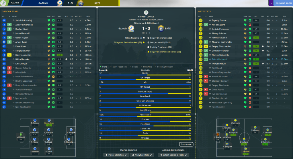To win the league, BATE would have to do it the hard way as they travelled to 2nd-place Gazovik. BATE led their opponents by 1 point with Shakhter a further point back. Gazovik has never won a single honor in the club’s entire history, but Shakhter has won eight titles, most recently in 2041, while BATE’s last title was 12 years ago in 2048.