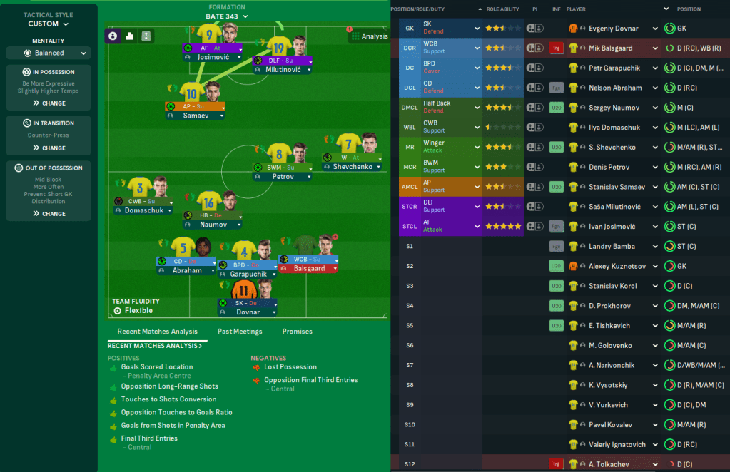 Life after Josimovic began with a worryingly wasteful 1-1 at Arsenal in which Bamba had a shocker, which forced Mahtal to change things around. 17-year-old centre back Alexandr Tolkchev headed home his first senior goal to open the scoring in a 2-0 win over ZhKKh and his fellow academy graduate winger Evgeny Tishkevish scored his first two goals in a 3-0 victory over Shakhter.
