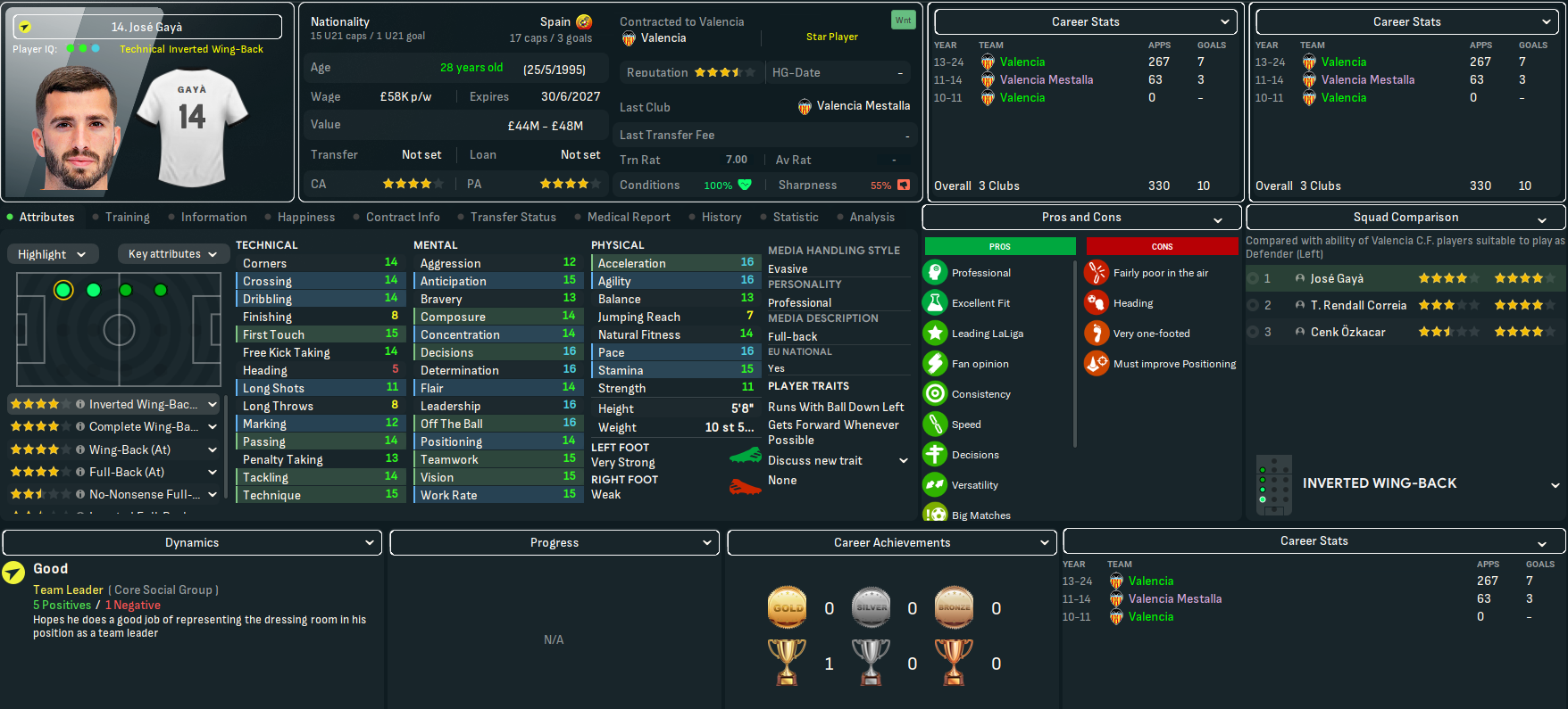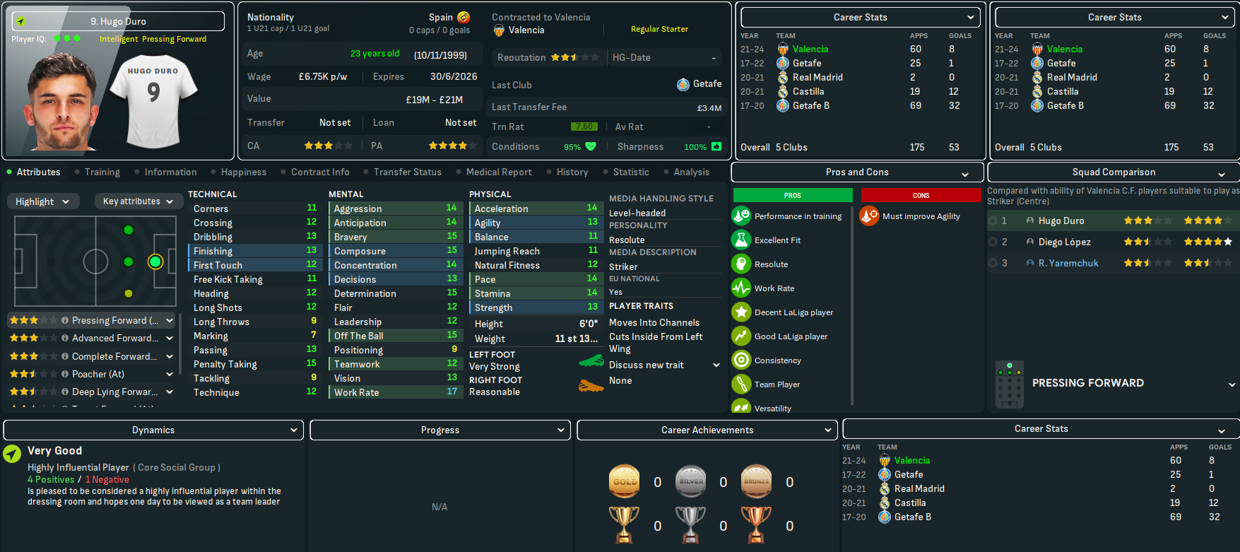 Valencia begin with nine players homegrown at the club in the first-team squad. The key man to their success will likely be a homegrown captain and left back, Alicante-born José Gayá. Homegrown midfielder Javi Guerra is the second-best player at the club, followed by Denía-born midfielder Pepelu, who’s just signed from local rivals Levante, Georgian goalkeeper Giorgi Mamardashvili, centre back Mouctar Diakhaby, homegrown attacker Diego López, 19-year-old Alicante-born centre back Cristhian Mosquera, Rafaelbuñol-born winger Fran Pérez, Portuguese midfielder André Almeida and full back Thierry Rendall Correia, centre back Cenk Özkacar, striker Hugo Duro and holding midfielder Hugo Guillamón. There was also decent potential at the club led by Algemesí-born centre back Yarek Gasiorowski and left back Jesús Vázquez.