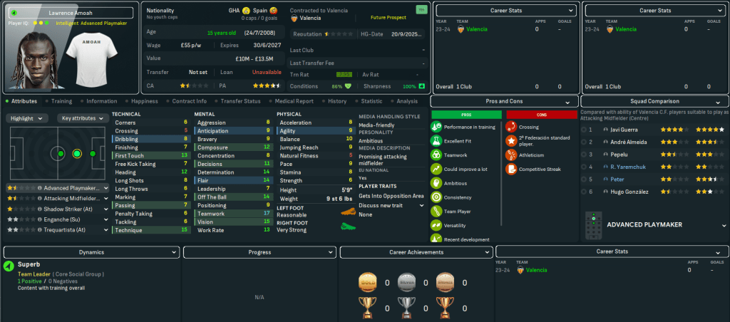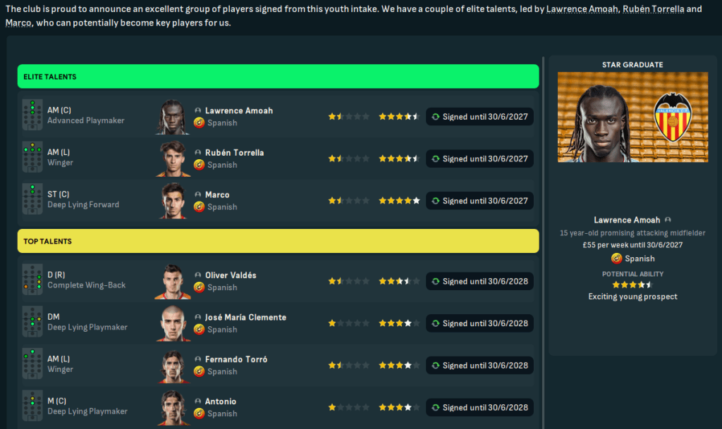 - Players developed through affiliate club academies – at the start of the game: Alboraya, Alzira, Bruinese, Catarroja, Cracks, Gandía, Kauno Zalgiris, Kelme, Orihuela, Ribarroja, Torrent (because otherwise, what’s the point of affiliates in FM24?