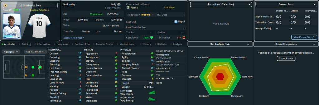 As a result, 90s Italian football will always hold a special place in my heart. So when I saw that Football Manager database creator The Mad Scientist was releasing a database for the 1994/95 season, I knew I had to delve into it and start a save in Italy. The database has the top 2 tiers available in England and Italy, plus the top tiers in France, Germany, the Netherlands, Scotland and Spain. So we’re going to start this adventure in Italy’s Serie B, with Atalanta. But more on that later.