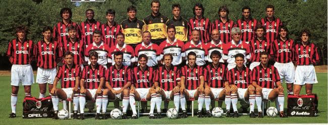 - AC Milan: Carlo Cudicini (20), Alessandro Costacurta (28), Franco Baresi (34), Paolo Maldini (26), Christian Panucci (21), Marcel Desailly (25), Demetrio Albertini (22), Ruud Gullit (31), Roberto Donadoni (30), Paolo Di Canio (26), Zvonimir Boban (25), Dejan Savicevic (27), Gianluigi Lentini (25), Marco van Basten (29)