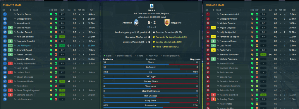 Atalanta began the new year with a 1-0 loss at Parma before the increasingly impressive Vieri bagged a hat trick in a clinical 4-0 win over Brescia. The goals continued to flow in both directions as they lost 3-2 at Sampdoria then Rodriguez’s brace earned a 3-2 victory at home to Fiorentina. But their season stalled as Rodriguez got injured in a defeat at Foggia in February, which ushered in a run of defeats before improving to pull off a surprise 1-0 win at home to 2nd-place Lazio.