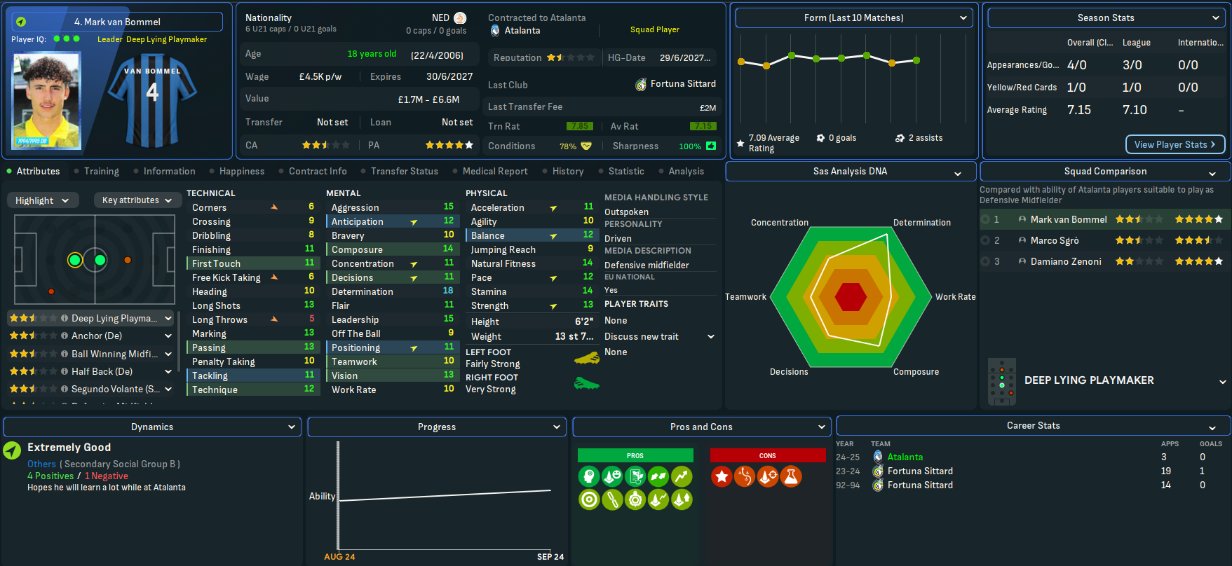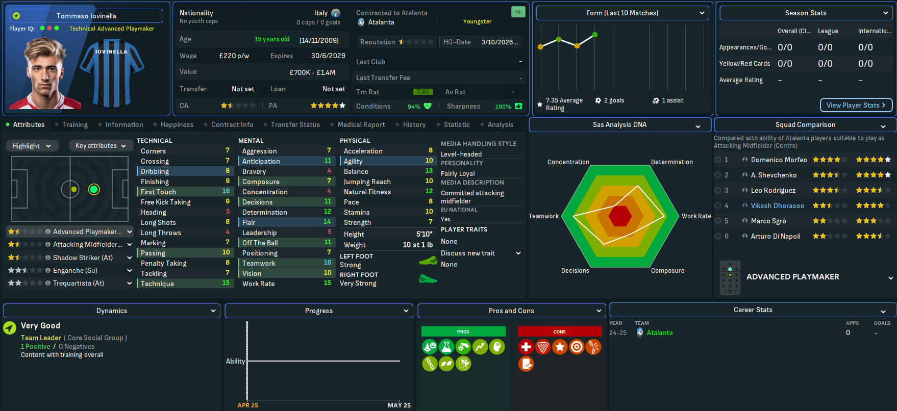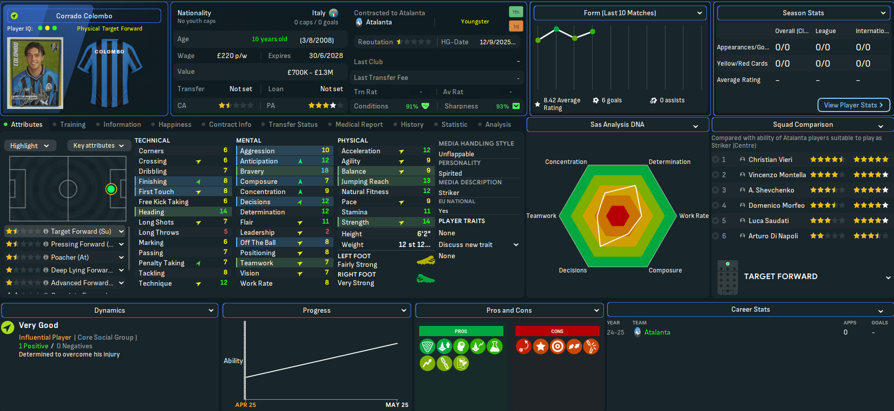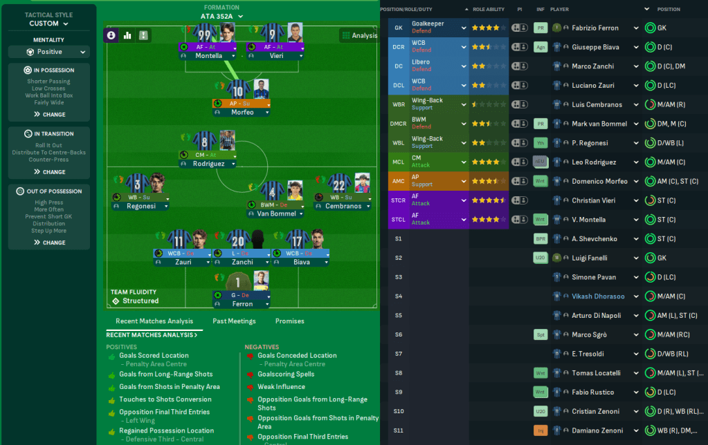 With that transfer work done, Lombardi stuck with his 3-5-2 approach and put plenty of faith in his army of young talent. He was also considering retraining Sheva as an attacking midfielder to shoehorn his big three attackers into the side. However, he was a little concerned by the defence, given his three starting centre backs were teenagers!