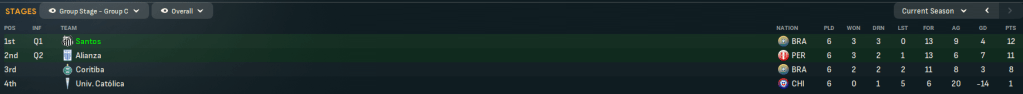 Striker Thierry Henry ensured a good start with a brace in a 3-1 win at home to Alianza before his late goal nicked a 2-2 at home to Coritiba. Another home game followed and two more Henry goals downed Católica 2-1. That meant 3 consecutive away days to finish, which started with a 2-2 at Alianza before Henry’s goal nicked a 1-0 at Coritiba to seal qualification and Aurélio’s brace earned a point in an exciting 3-3 in Chile to win the group. And Alianza surprisingly beat Coritiba on the final day to knock them out.