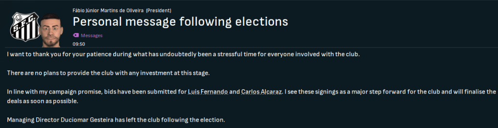 It’s safe to say that the first three seasons of this save have been bonkers and typified why I love managing in Brazil. In season two (2025), the 2023 South American champions Fliminense and 2021 Brazilian champions Atlético Mineiro were relegated from Série A. A year later, promoted Coritiba became champions of Brazil with a 95th-minute final-day winner while Sao Paulo were relegated!