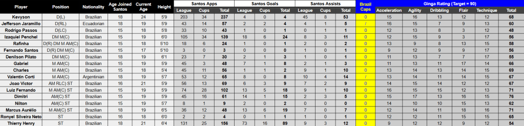Henry very much isn’t the kind of player to meet the Ginga rating. But 17 players are now on the list, which is led by Dimitri’s 76 rating followed by Fernando and Aurélio (71). Click the image below to check out the players’ club stats and Ginga ratings.