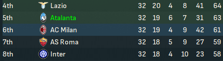 That teed up an exciting battle for the last few European places with Atalanta, Milan, Roma and Inter all fighting for 5th and 6th.