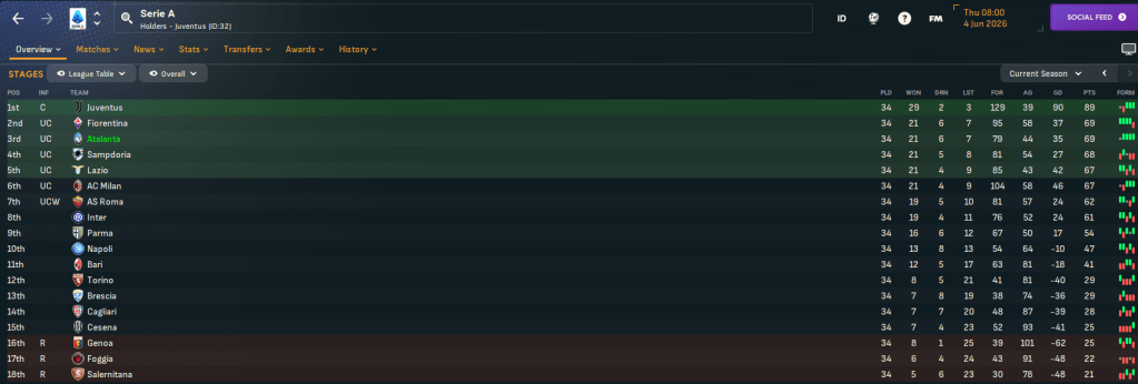How would Atalanta fare in Europe? And could they continue to challenge the big teams in Serie A? Or would Lombardi’s overachievement attract attention from elsewhere? Join us next Saturday to find out!