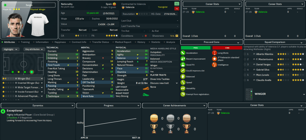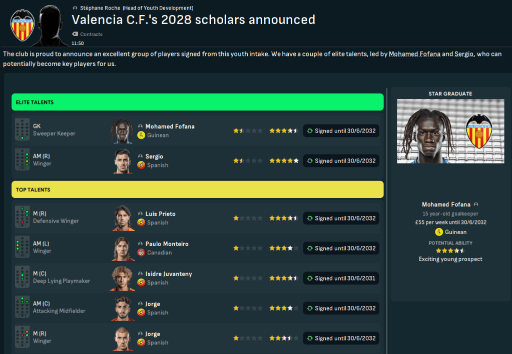 The latest youth intake served up a few players to get excited about led by Valencia-born 5-star potential winger Sergio along with Guinean goalkeeper Mohamed Fofana, winger Luis Prieto and centre midfielder Isidre Juvanteny, who’s apparently a Valencia supporter despite being born north of Barcelona.