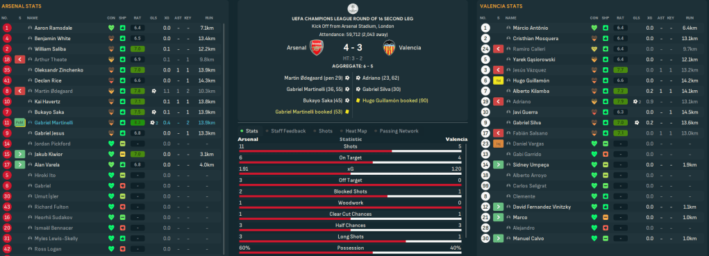 The Champions League began with a dire 0-0 at Atalanta before dominating Midtjylland 4-1 with goals by Kilamba, Cristhian Mosquera and Telehovschi and CSKA-Sofia 3-0 away. But tricky away days at PSG, Napoli and Barca saw them fall to 22nd. They took on RB Leipzig in the playoff round, and a Pino own goal and Adriano’s brace, including a wonderful volleyed 2nd, earned a 3-1 home win before holding them to a 1-0 in Germany. That teed up a final 16 clash with Arsenal and a late Daniel Vargas goal nicked a 2-2 at home before being edged out 4-3 in an epic 2nd leg.