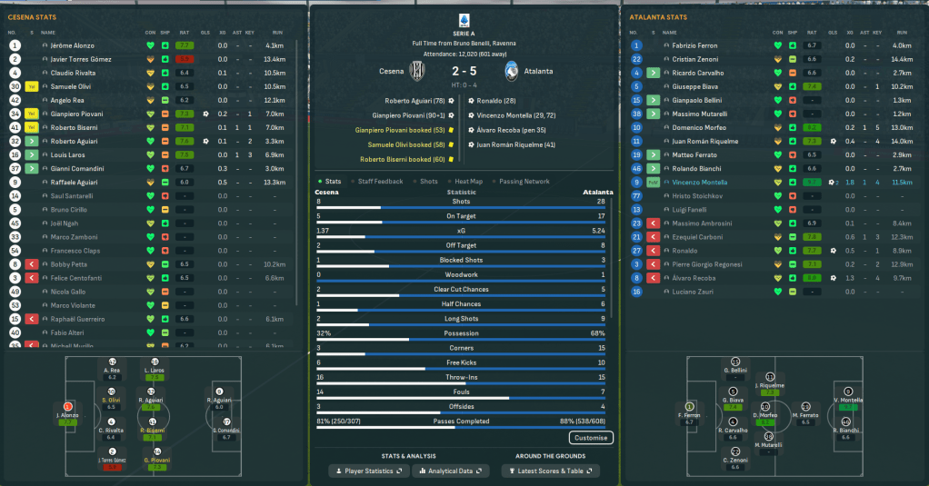 There were plenty of teething problems as they bedded in the new approach, especially as Ronaldo went on international duty for 2 months, with a 4-3 win over Sampdoria followed by a 3-3 at Fiorentina and Recorba scoring twice in a 4-1 victory at home to Bari. But Ronaldo returned to score, lay on 2 and win a penalty as Morfeo bagged a brace in a superb 4-2 win over Juventus, in which they had 63% possession.