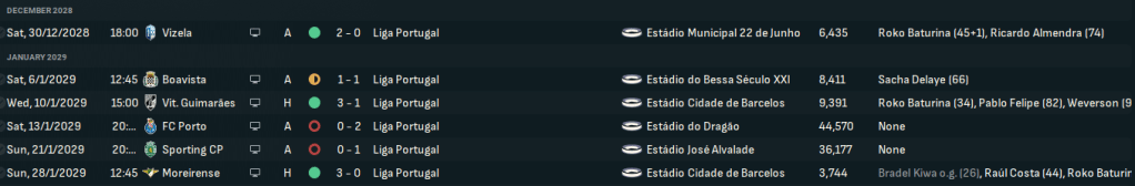 Big Sam’s home debut was a Minhoto Derby at home to rivals Vitória. Baturina gave them the lead before Vitória scored their first shot in injury time. But Gil Vicente dominated the second half and eventually made it count with late Felipe and Weverson goals to move 6 points from safety. Things got tougher as they travelled to Porto, Big Sam rotated, they got battered and lost 2-0, then went to Sporting with a debutant young goalkeeper and only lost 1-0. But they finished January with a dominant 3-0 win over 8th-place Moreirense with Baturina again on target.