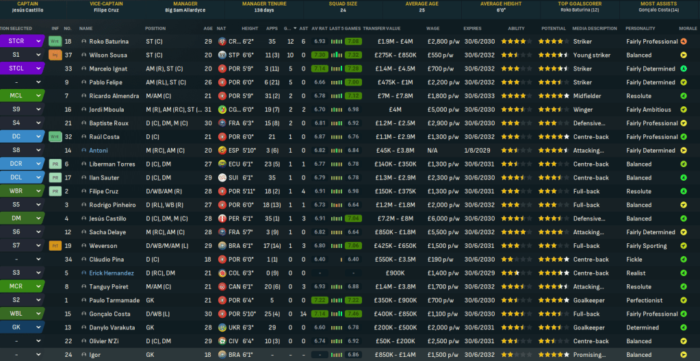 The best players at the club included exciting 21-year-old midfielders Ricardo Almendra and Tanguy Poiret, along with defensive midfielder Jesús Castillo, attackers Jordi Mboula and Pablo Felipe (who are terrible), promising centre back Raúl Costa alongside Ilan Sauter, Liberman Torres and Baptiste Roux, and decent wing back options Weverson, Goncalo Costa, Filipe Cruz and Rodrigo Pinheiro. But Big Sam was pinning his hopes on misfiring striker Roko Baturina (2 in 14) and his young sidekick Marcelo Ignat.