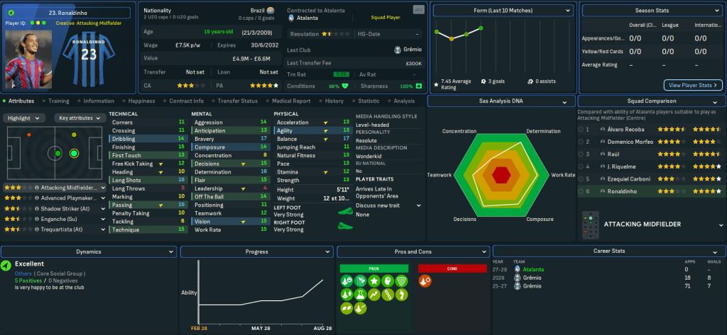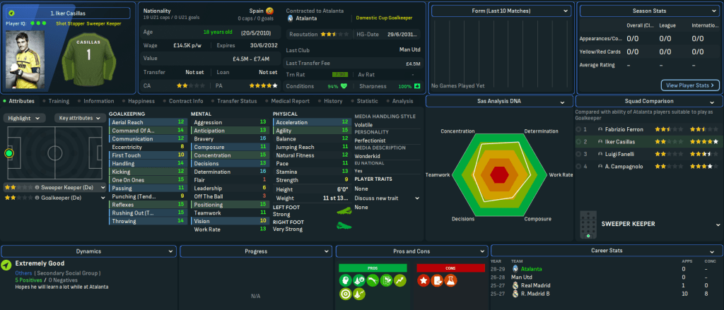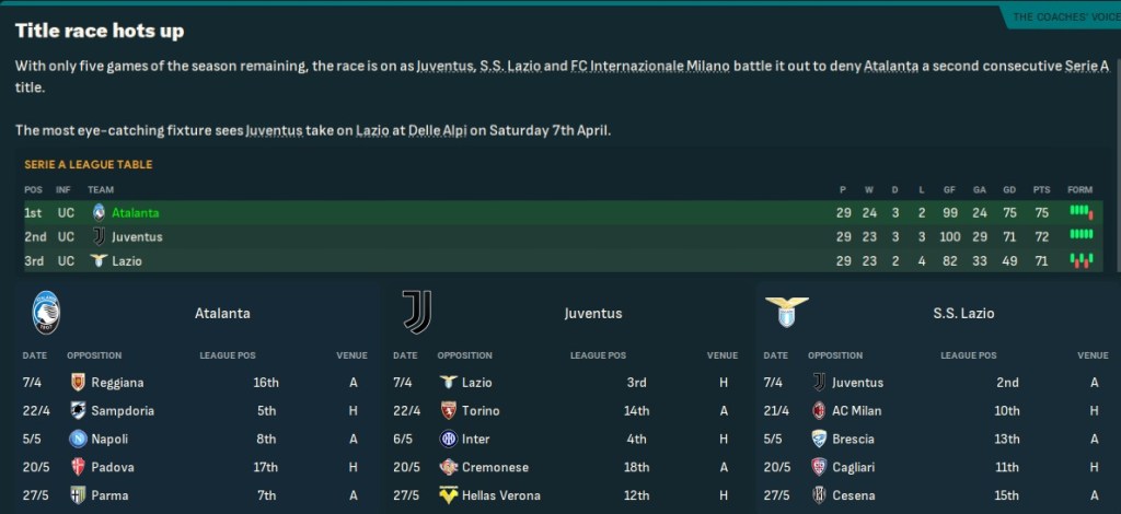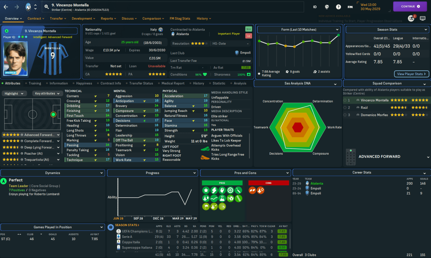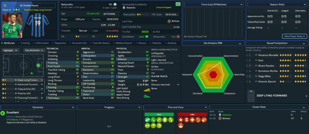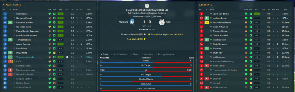 Lombardi’s CL success saw him become an iconic figure at Atalanta, behind the legendary Montella and Recoba. This save has been but a lot of fun. However, I can’t handle the unexplainable dwindling finances (we somehow ended the season with £1m in the bank despite turning a transfer profit), the number of teams coming in for players every summer, and other teams making offers for all our staff members. So it makes sense to leave Atalanta on a high.