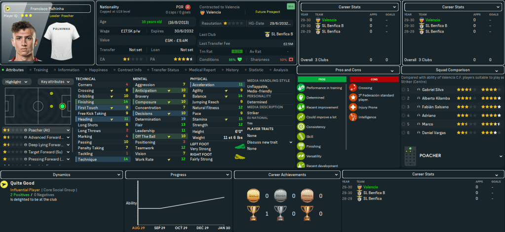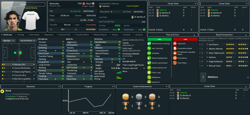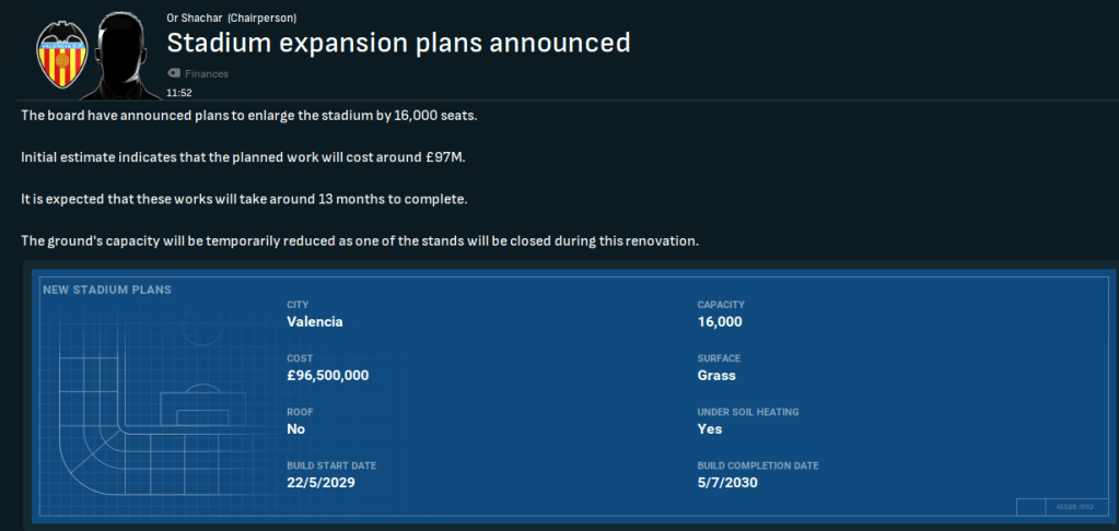 The summer of 2029 began with the Valencia board expanding its planned stadium extension, paying £96.5m to add 16,000 seats to La Mestalla, upgrading the previously announced 6,000. And the work will take 13 months to complete. The board also used the club’s favourable financial position – fully thanks to Lazaró’s tactical nous – to finally clear all of its debts, which saw Lazaró come into the new season with £290m in the bank and a £191m transfer budget he couldn’t dream of spending.