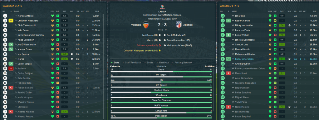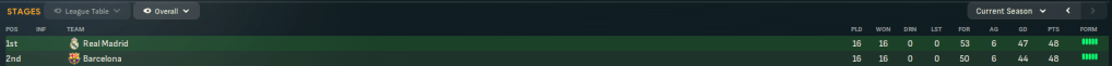 Valencia began the season with two superb 6-0 home wins as wonderkid striker Fabián Salsano scored 4 in a 6-0 hammering of rivals Villarreal then assisted 4, which equalled his entire assist tally last season, as star man Javi Guerra scored twice against Alavés. However, the gap to the big two showed as those wins were sandwiched by getting dominated 3-1 at Barca. That began a solid start to the campaign, but it was nothing compared to the big two as Real and Barca both won their first 16 matches before the first El Clásico clash in mid-December, which they drew 0-0.