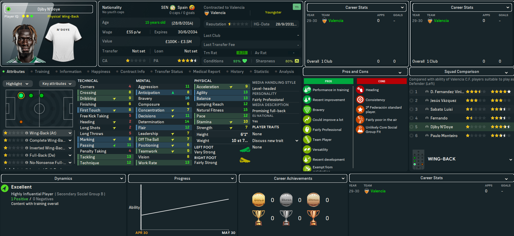 However, they had by far the worst youth intake of Lazaró’s time at the club, which delivered 4,5-star potential left back Djiby N’Doye and 4-star potential striker Amador and right back Josué Beltrán.