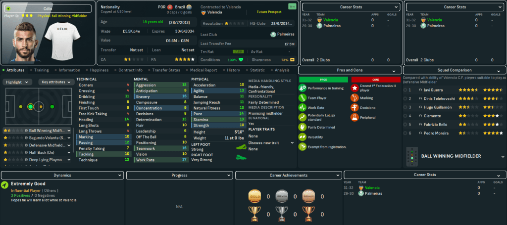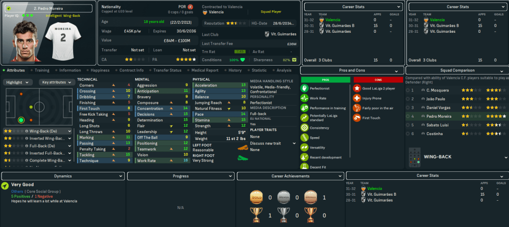 Having made no signings last season, Lazaró started putting his hard-earned £600m wealth to use. His main priority was a right back, considering Daniel Vargas filled in there last season and his 5 tackling miraculously dropped to 4. So Lazaró signed an exciting natural right back in Pedro Moreira for a new club record £36m from Vitória Guimaraes. He replaced Adriano by beating all the biggest teams in the world to Juan José Ortíz for £1.7m from Junior and promising midfielder Célio for up to £7.5m from Palmeiras. He also promoted wonderkid Matías Romero to replace Vázquez.