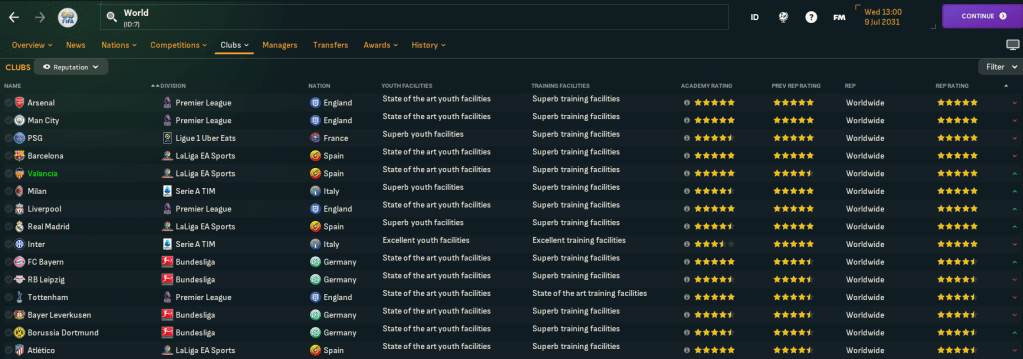 That success saw Valencia fly up the world club rankings, despite having won nothing other than that. Indeed, they were now considered reputable than Real Madrid and only just trailed Barcelona to be the 5th most reputable club in the world.