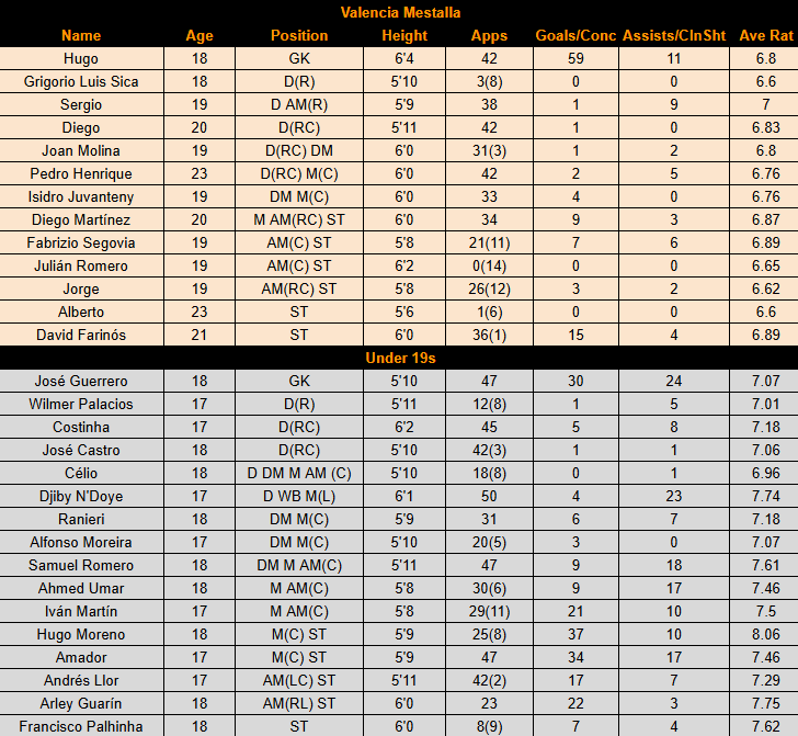 Valencia had fewer homegrown players this season, but they contributed to a shared 374 league games and 85 goals, as well as 169 cup games and 23 goals. Click below for the full stats: