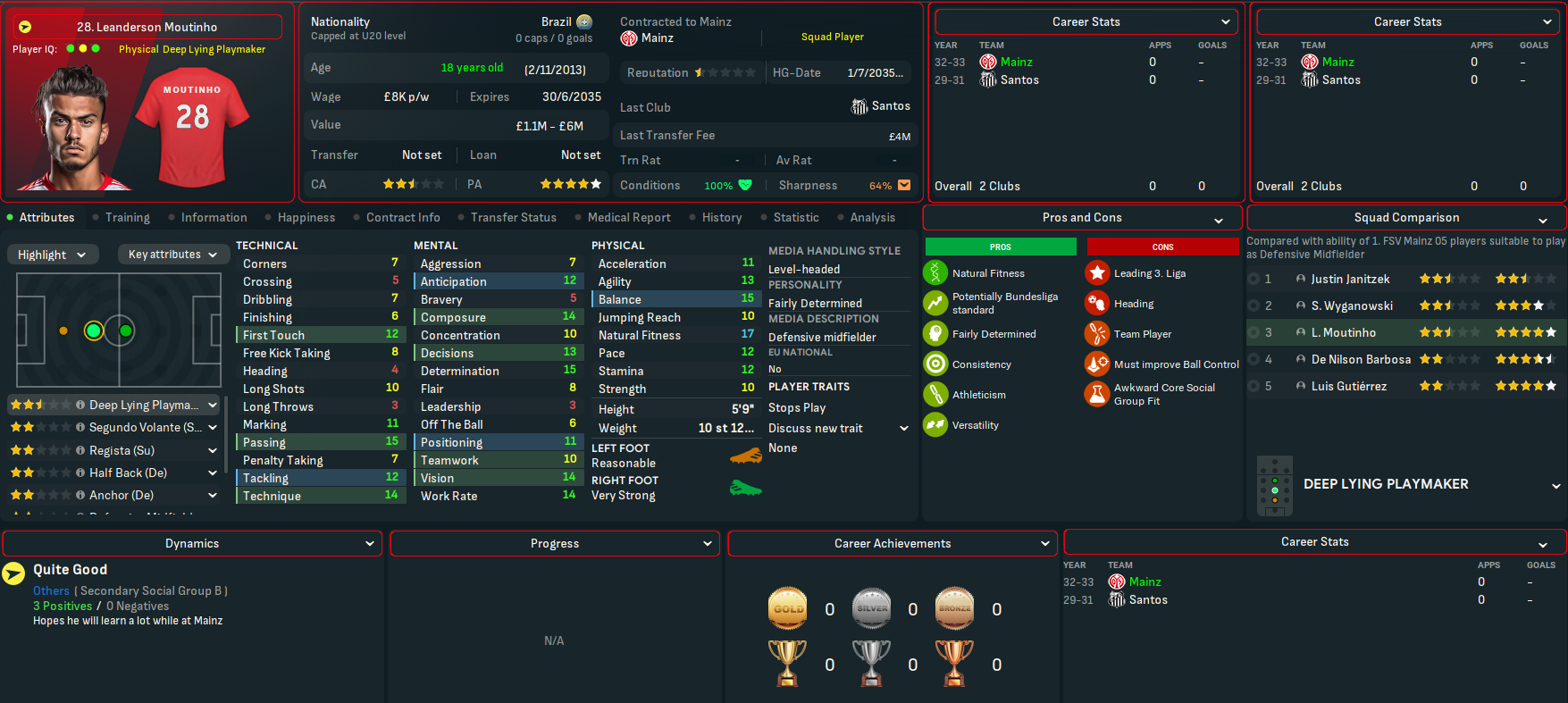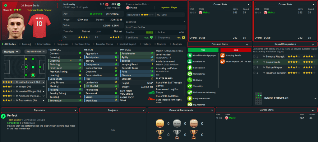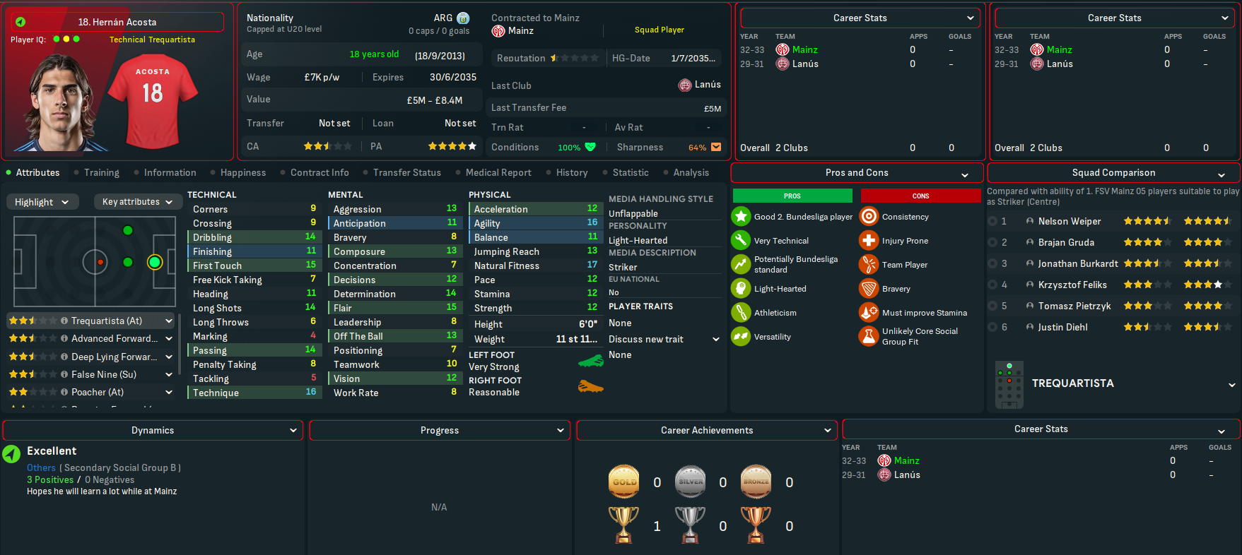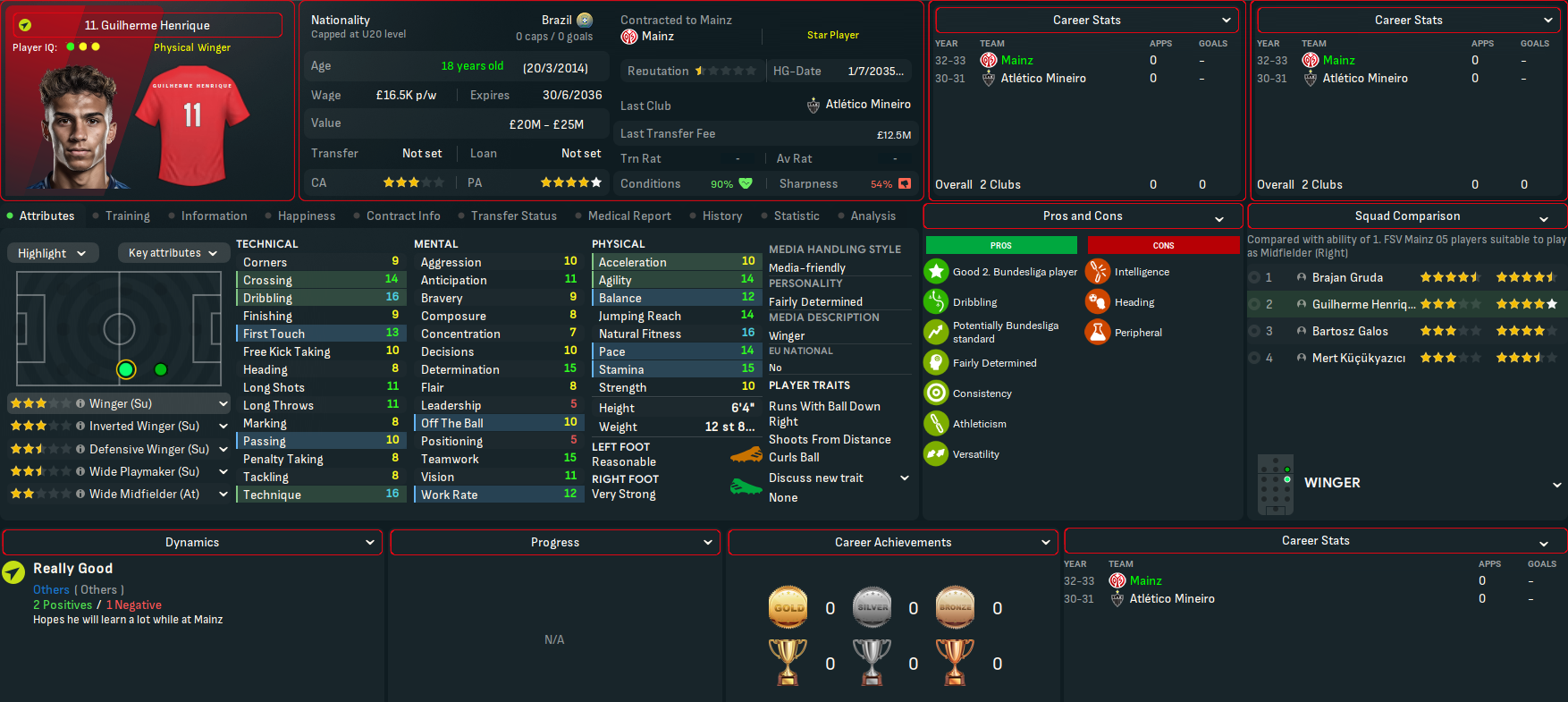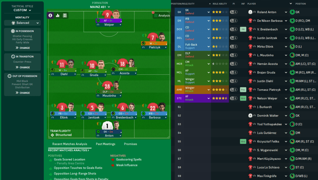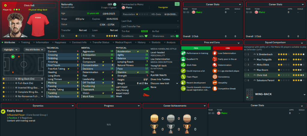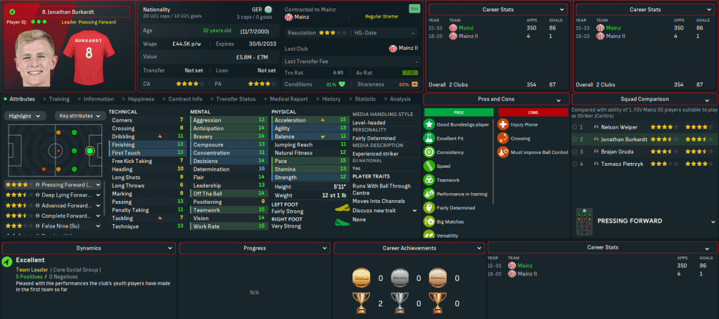 The good news was that Mainz had established homegrown players in strikers Nelson Weiper, who’s been worryingly goalshy in this save, and Jonathan Burkardt, German international winger Tomasz Pietrzyk, midfielder Brajan Gruda and goalkeeper Roland Anton. There were also a few decent prospects coming through like midfielder Szymon Wyganowski, winger Krzysztof Feliks, centre back Volker Breidenbach and full backs Mirko Eltink and Mert Kucukyazici. And there were a few youngsters to keep an eye on, in winger Angelo Tursi, striker Tim Koch and midfielder Marcel Henke.