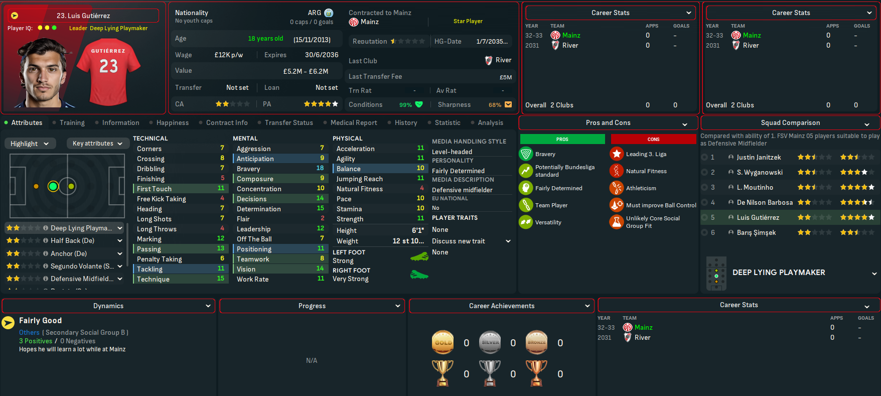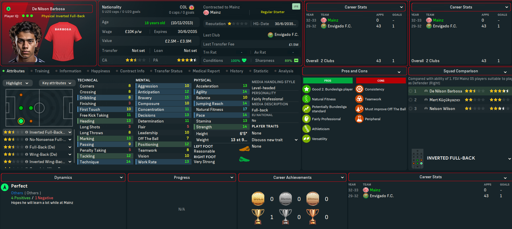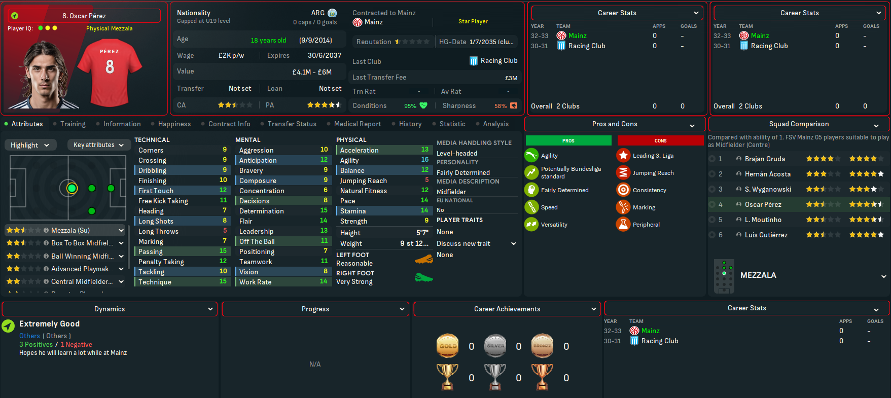 Like in Valencia, the aim is to develop a team that’s fully homegrown at Mainz. However, there are no Ibero-American rules in Germany and it takes a ludicrous 2,920 days (8 years) for players to gain German nationality. So with that in mind, we’re going to impose a rule that new signings must arrive before their 19th birthday, enabling them to be homegrown by the age of 21.