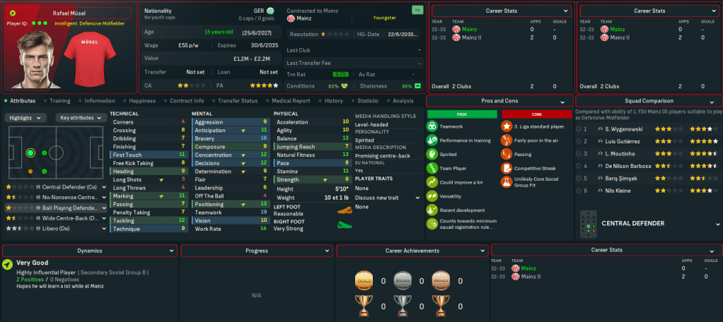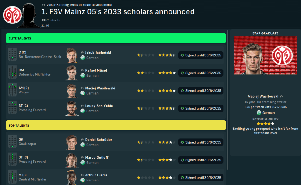 The positivity at Mainz was boosted by a really solid intake led by 5-star potential centre back Rafael Musel and winger Maciej Wasilewski and 4.5-star attackers Savas Afsar and Louay Ben Yahia, centre back Jakub Jablonski and left back Chris Voss. It also included five 4-star players and a 3.5-star.